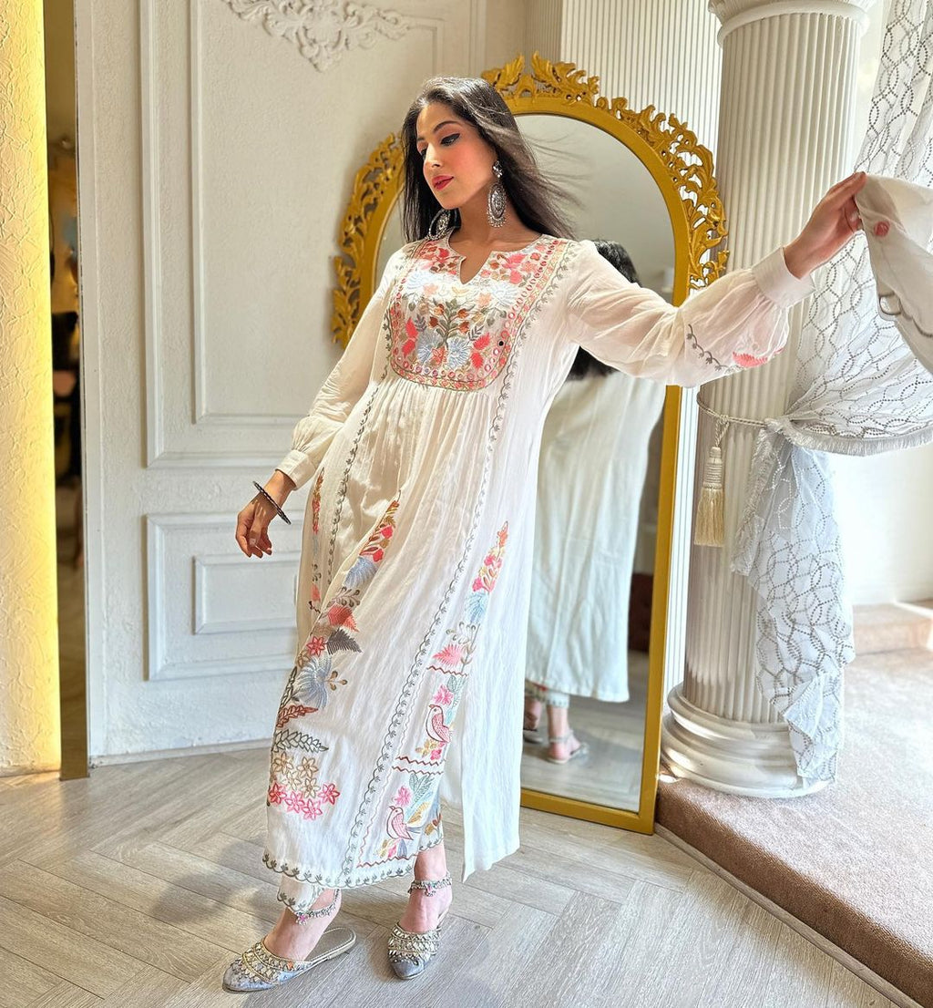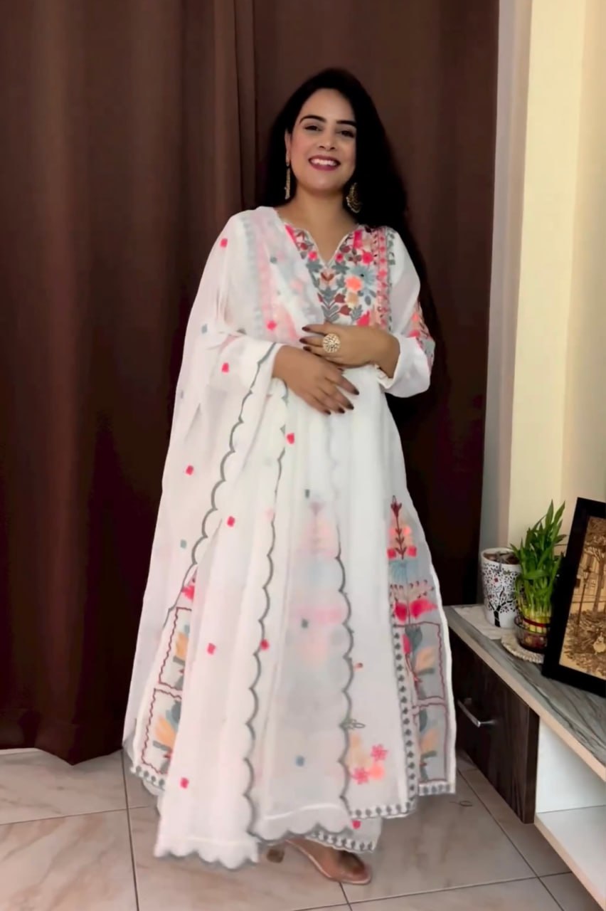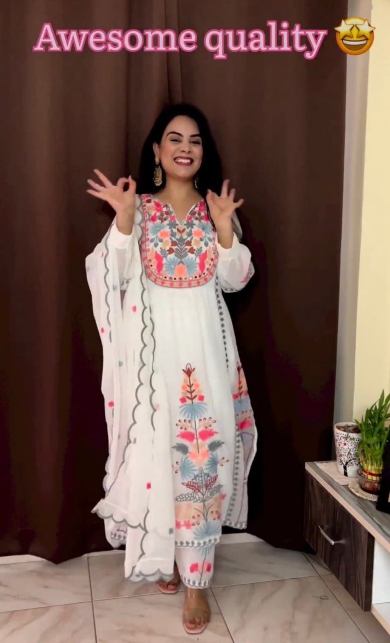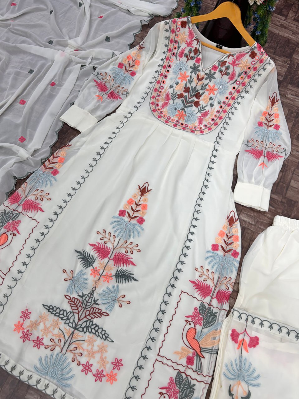 Other Details | Fabric :- Heavy fox Georgette fabric Fancy moti Work (dupatta size 2.30 meter) Kurti Fabric :- fox Georgette fabric With(Fully stitched) Kurti,Plazzo Inner :- Micro Silk Work :- Multi Needle With Original Mirror Embroidery Work. |