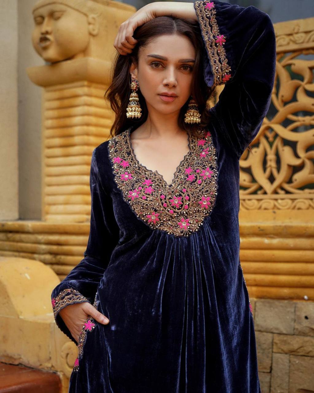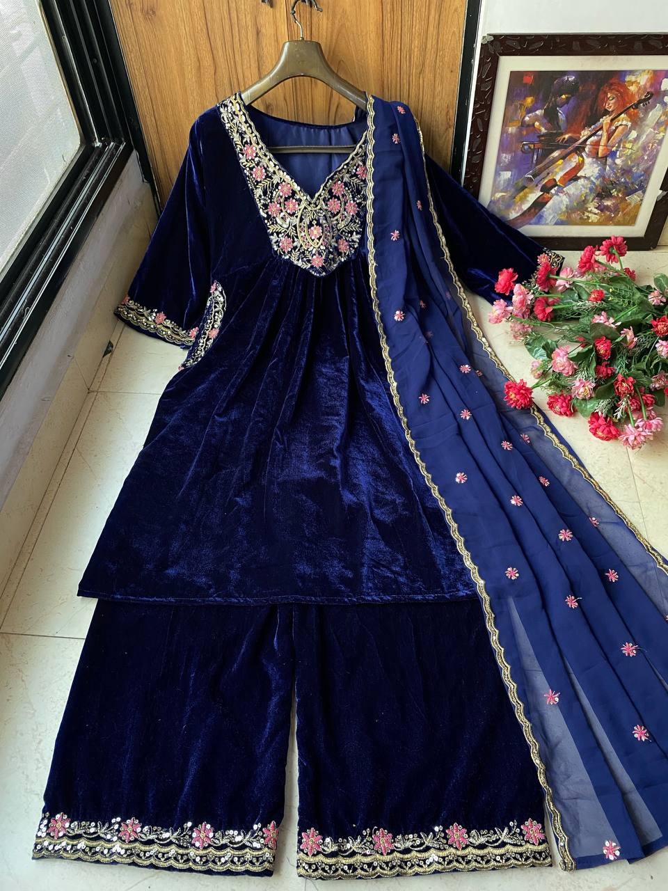 DUPATTA: HEAVY GEORGETTE WITH *SEQUENCE EMBROIDERY WORK* TOP : HEAVY 9000 VELVET WITH SEQUENCE EMBROIDERY WORK (FULLY STITCHED) & *BOTH SIDE POCKET* PLAZZO: HEAVY 9000 VELVET WITH SEQUENCE EMBROIDERY WORK (FULLY STITCHED) |