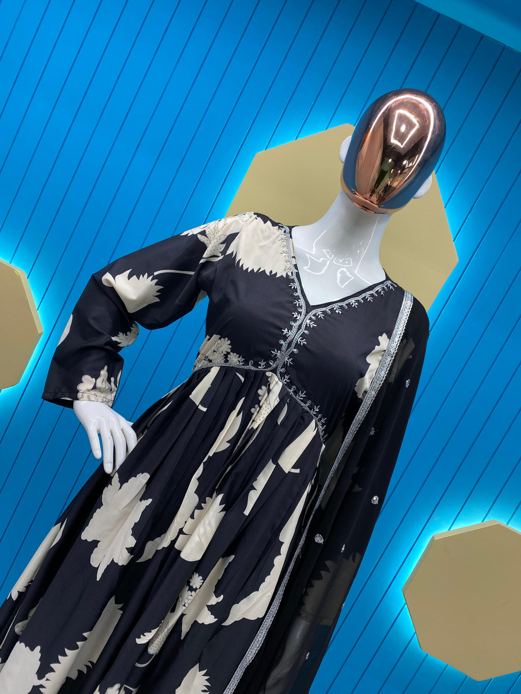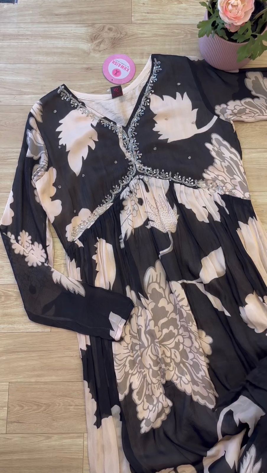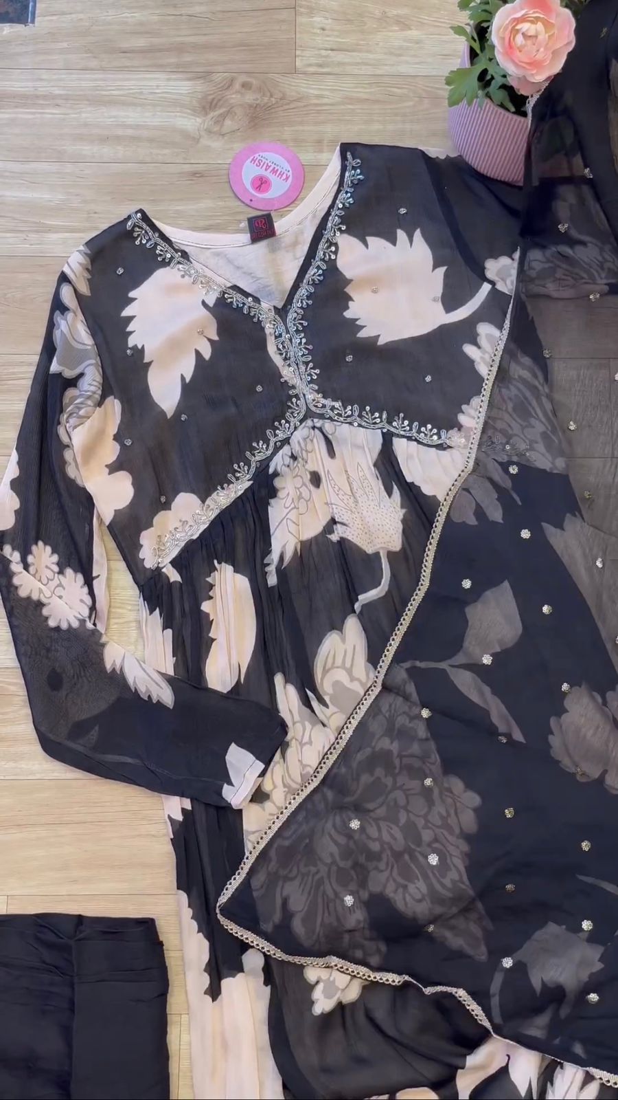 # TOP INNER : SILK # HEIGHT: 55” inch # BOTTOM: MICRO # DUPATTA : GEORGETTE SEQUENCE WORK WITH BORDER LACE WORK 2.2meter |