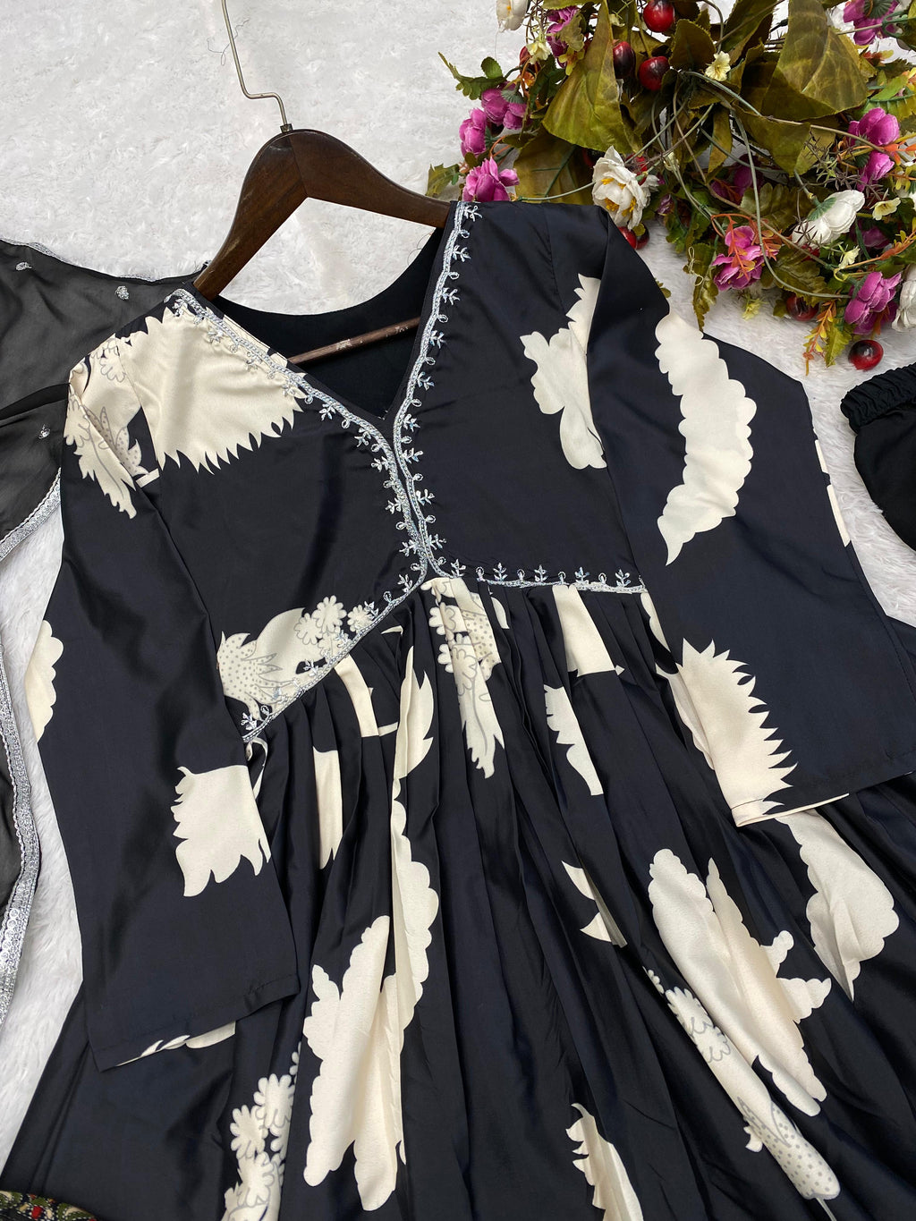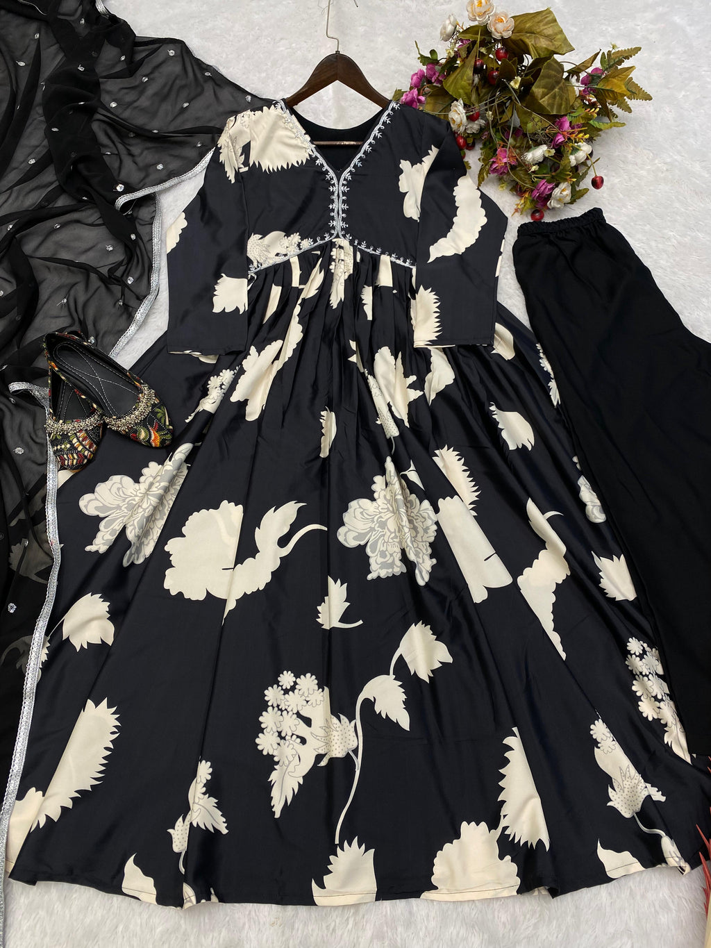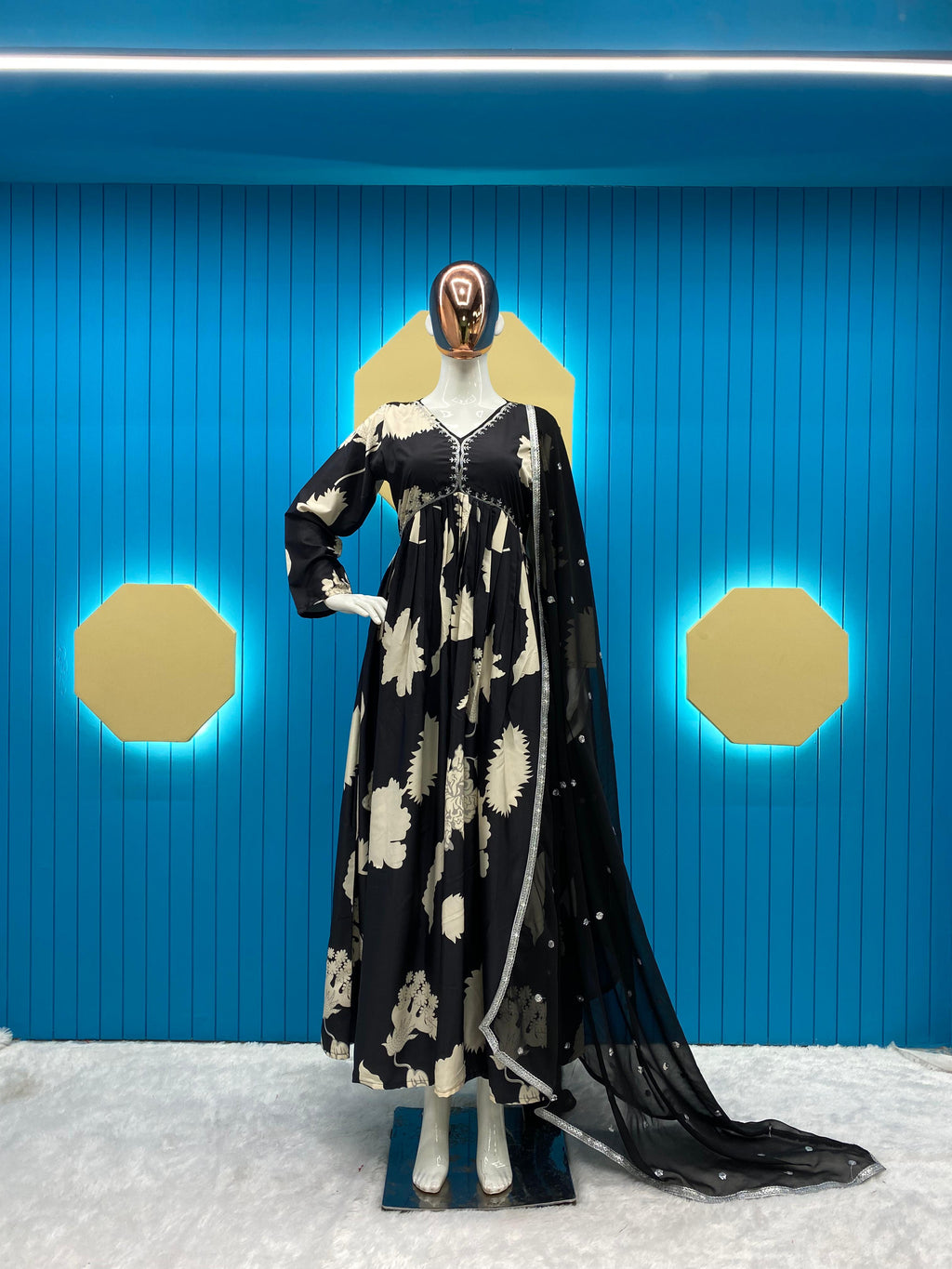 # TOP INNER : SILK # HEIGHT: 55” inch # BOTTOM: MICRO # DUPATTA : GEORGETTE SEQUENCE WORK WITH BORDER LACE WORK 2.2meter |