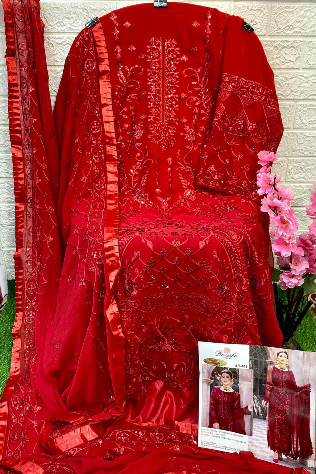 Ramsha Dno R 448 Georgette With Beautiful Heavy Embroidery Work Stylish Designer Party Wear Salwar Kameez