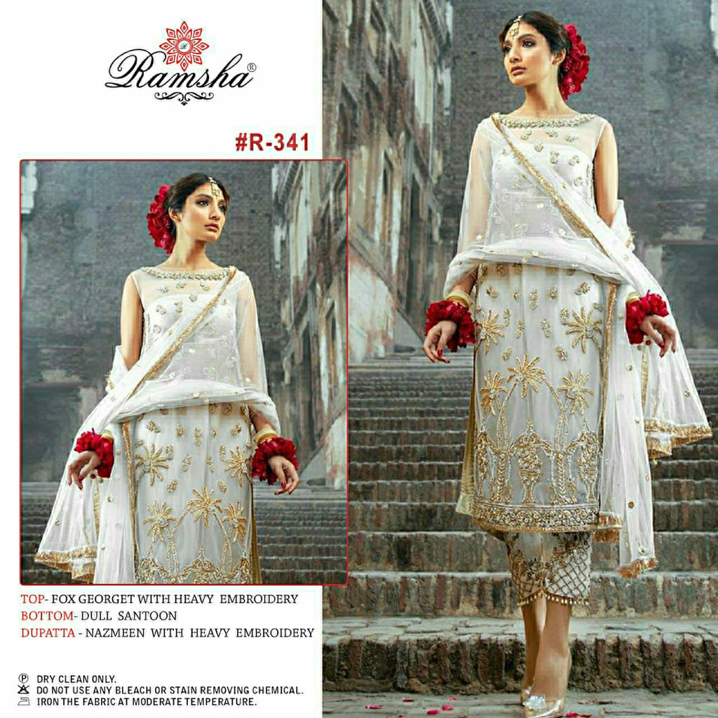 Fabric Details : Top : Georgette With Heavy Embroidery Bottom : Dull Santoon Dupatta : Nazmeen With Heavy Embroidery |