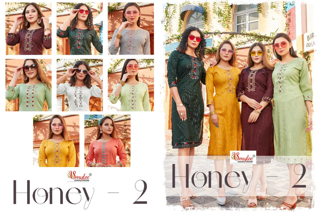 HONEY vol 2 FEBRIC.. Heavy LUREX LINNING RIYON WITH EMBROIDERY WORK PC’s. 8 Size. M. L. XL. XXXL Rate – 395+gst |