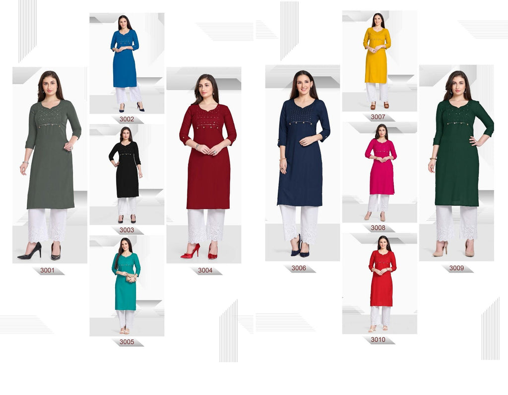 Catalogue:- NIRJA ADVANCE VOL-3 cloth :- RAYON COTTON WITH NECK Length :- 45″ APPROX Size:- M L XL 2XL 3XL AVAILABLE Rate:- 299/- ONLY |