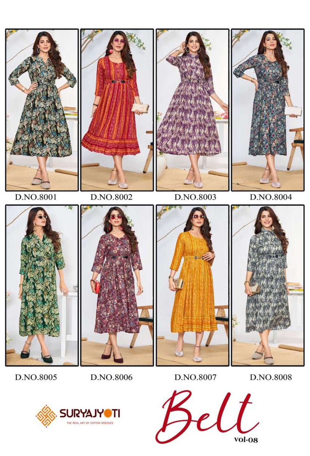 catalogue:- belt vol-8 cloth:- rayon print with foil & belt size:- *m l xl xxl 3xl * rate:- 520/+gst |