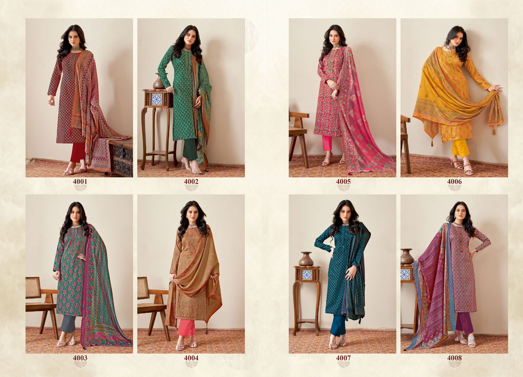 TOP:- JAAM SATIN DISCHARGE PRINT WITH FOIL AND NECK EMBROIDERY BOTTOM:- PURE COTTON DUPATTA:- PURE MODAL SILK DISCHARGE PRINT WITH TESSELS CUT:- 2.5-2.5-2.25 |