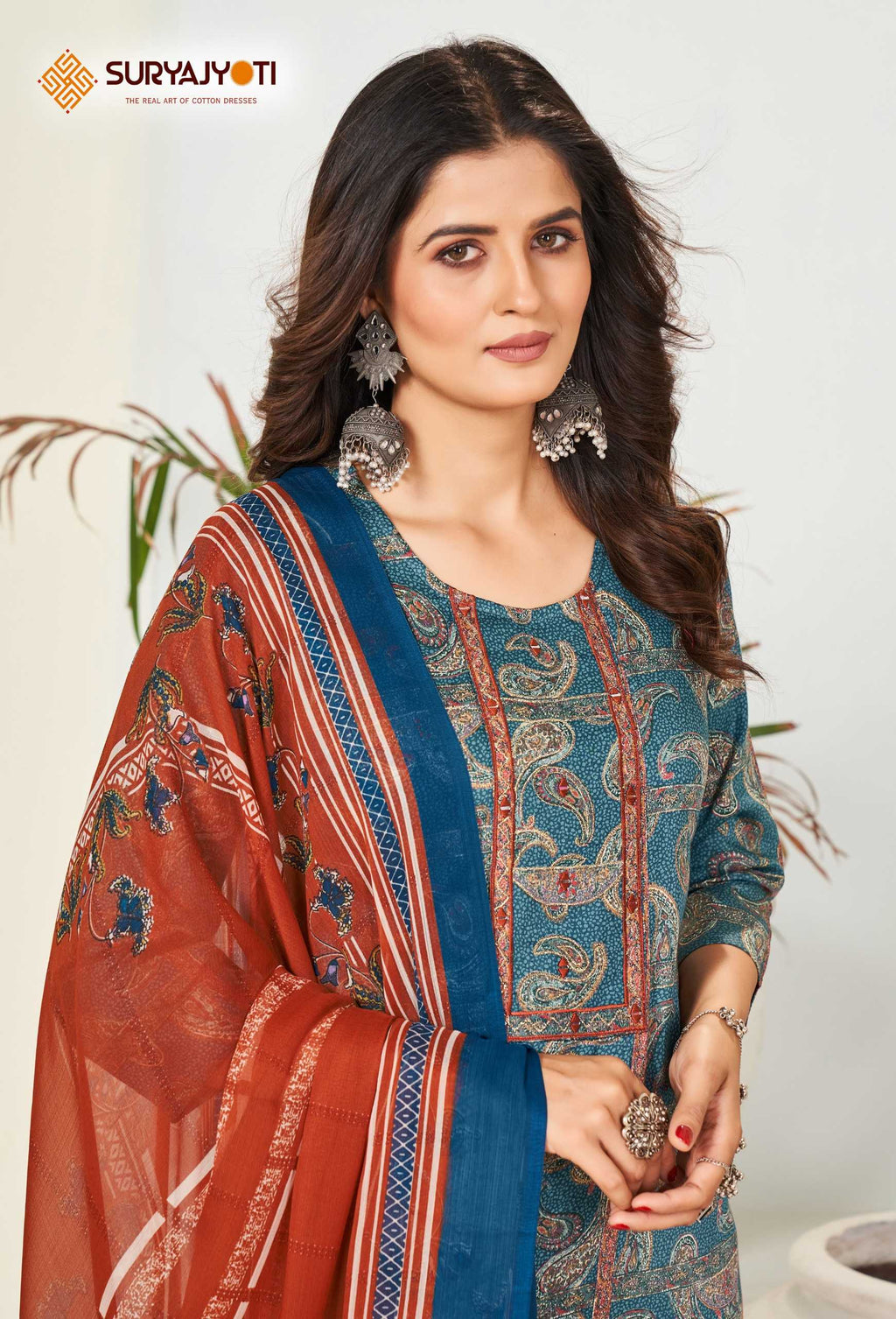 Fabric detail CLOTH:- COTTON PRINT WITH NECK WORK DUPATTA:- NAZNEEN BOTTON:- PURE COTTON |