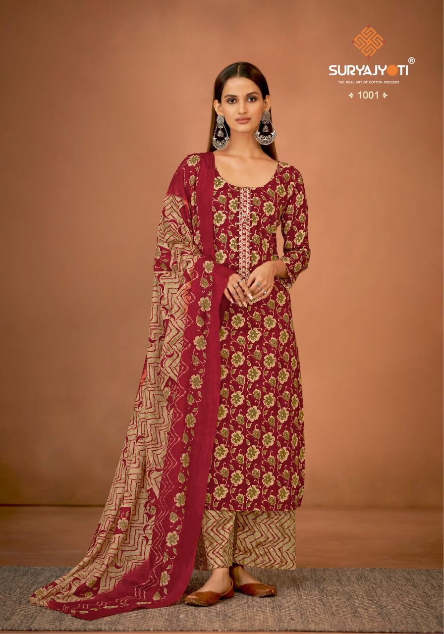 Fabric Details : Cloth : *Cambric Cotton Print With Neck Embroidery * Dupatta : Cotton Print Cut : 2.5-2.5-2.25 |