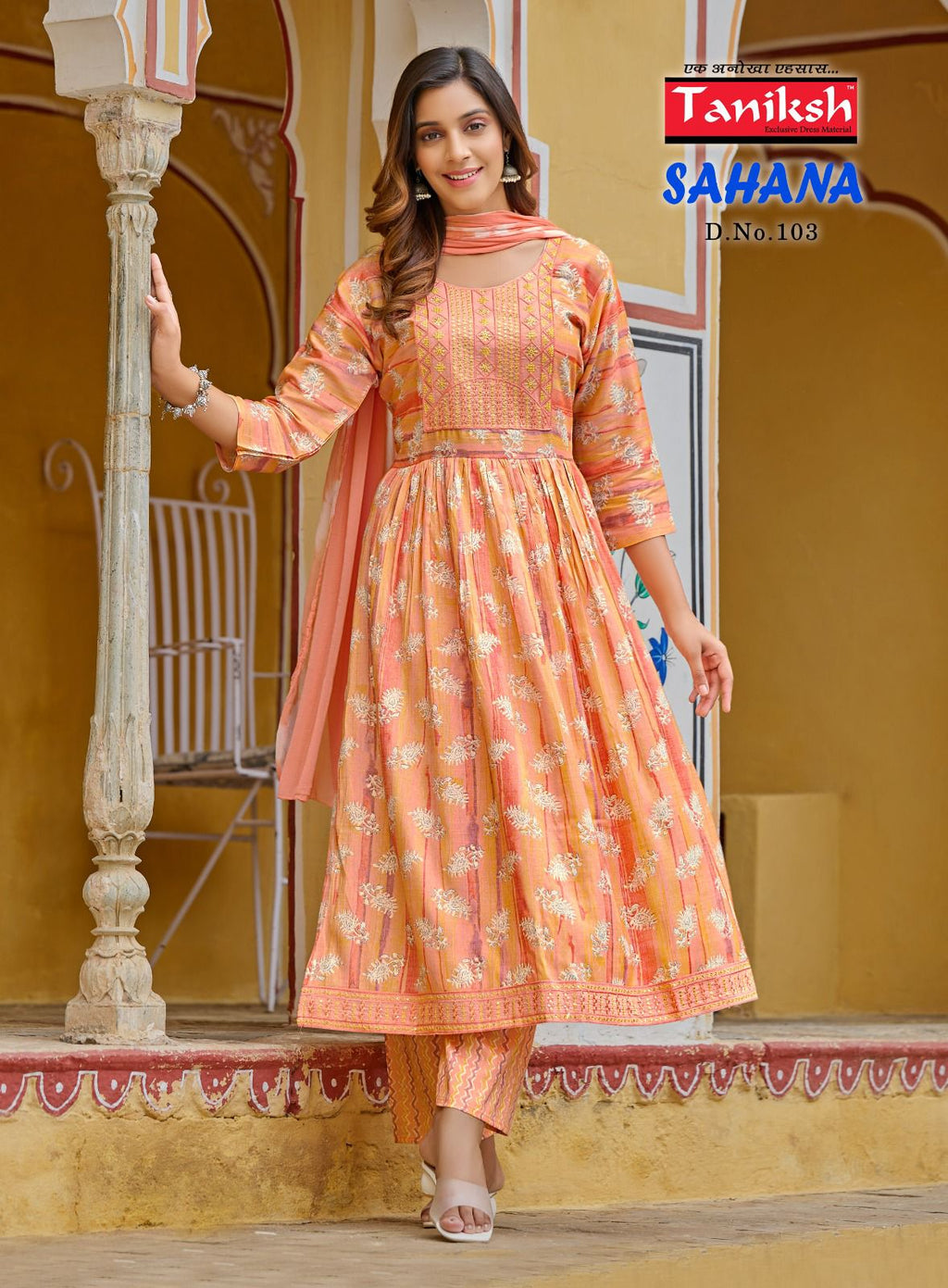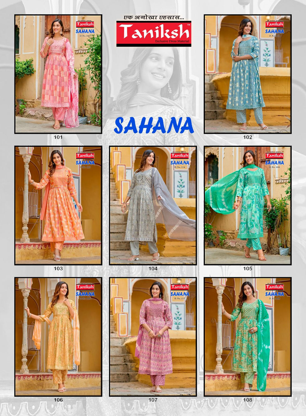 Taniksh Sahana Vol 1 Rayon Print With Sequence Work Naira Cut Style Kurti