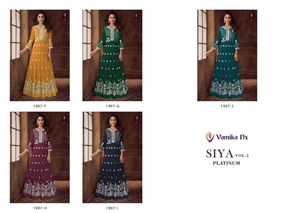 Vamika Siya Vol 2 Platinum Georgette With Fancy Embroidery Work Stylish Designer Festive Wear Long Kurti