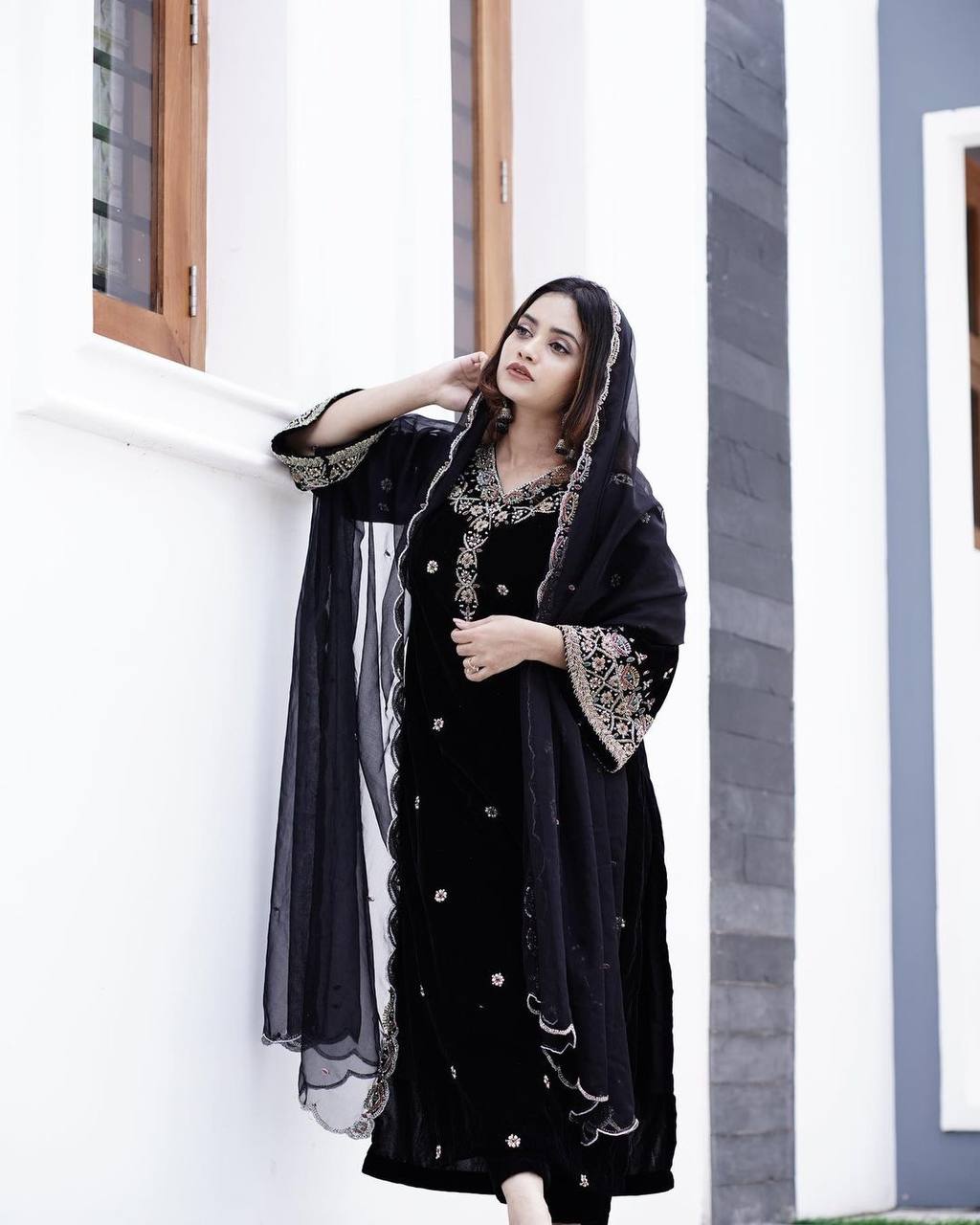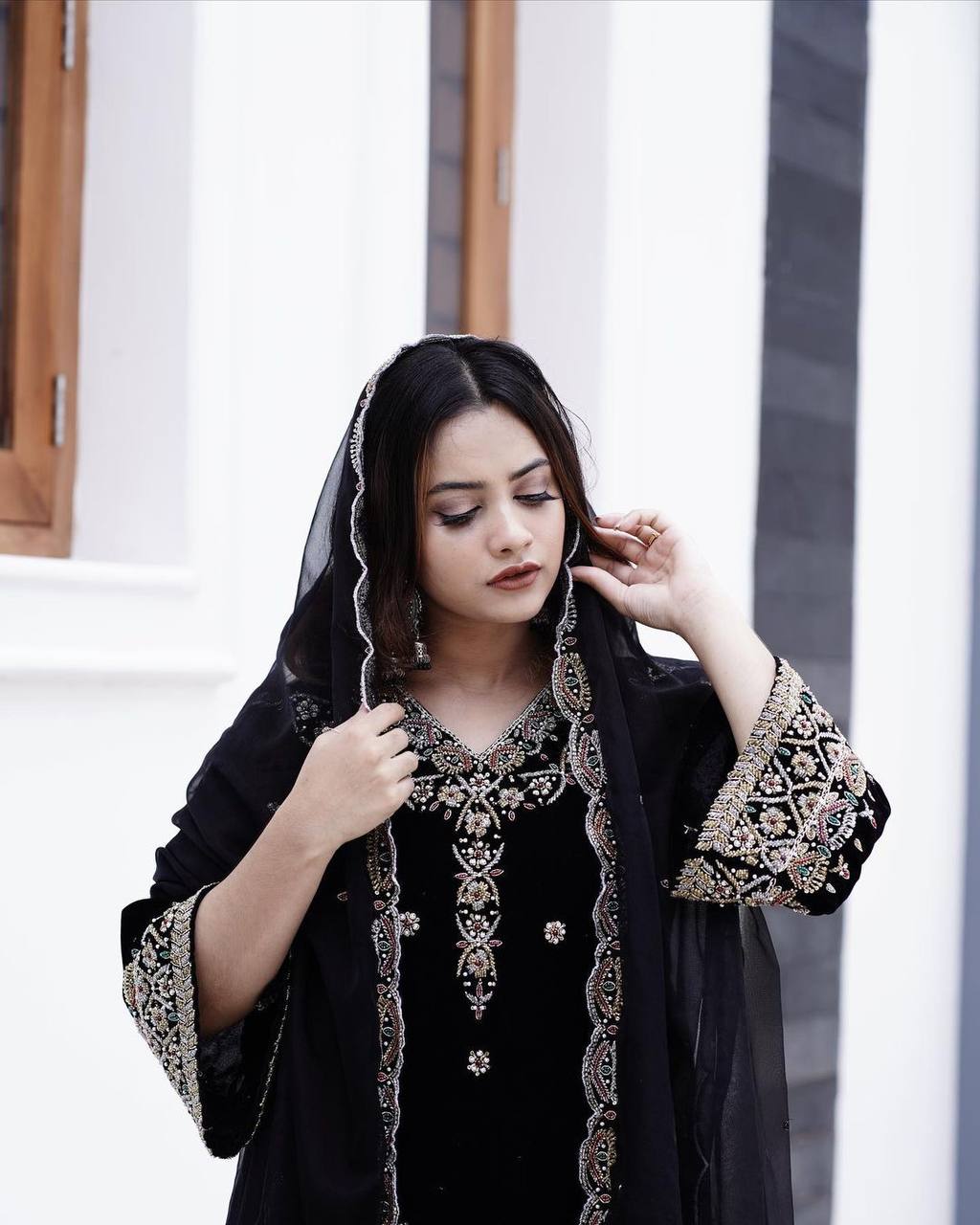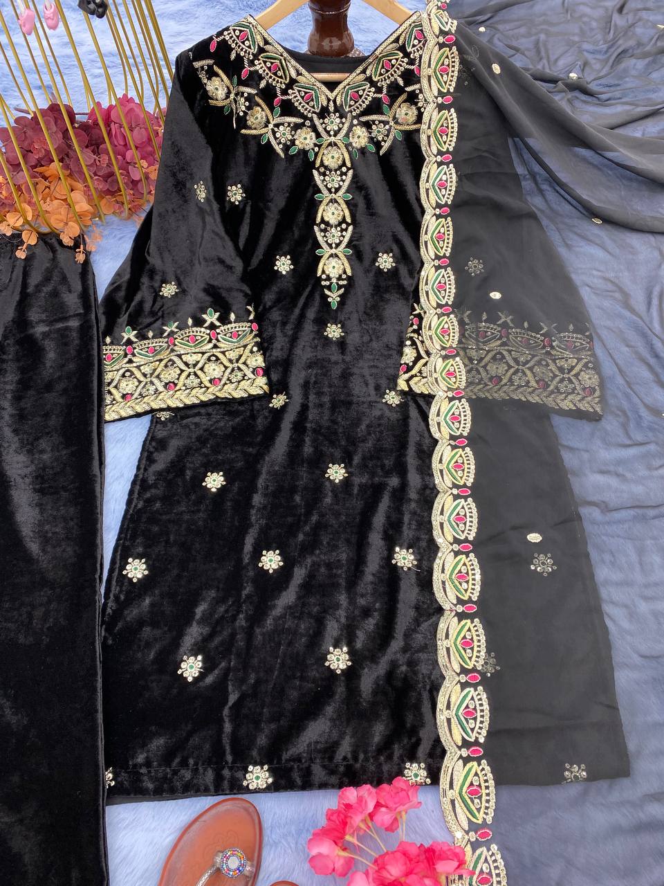 *Top Fabric*:Heavy Pure Viscose Velvet With Embroidery 5 mm Sequence Work With Fancy Bell Sleeve *Top Size* :up to 42 XL Free Size & XXL 44 Margin *(Full Stitched)* *Top Length*:40-41 inches *Top Inner*: Micro Cotton *Bottom Fabric *:Heavy Pure Viscose Velvet With Elastic *Plazzo Length* 40 Inch *(Full Stitched)* *Dupatta Fabric*:Heavy Faux Georgette With Embroidery 5 mm Sequence Work With Cutwork *Dupatta Length:* 2.20 Mtr |