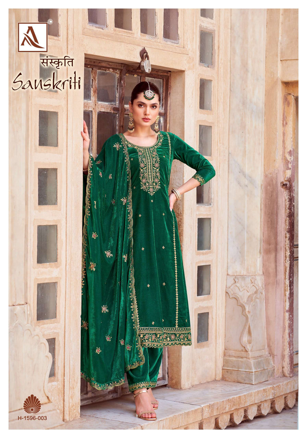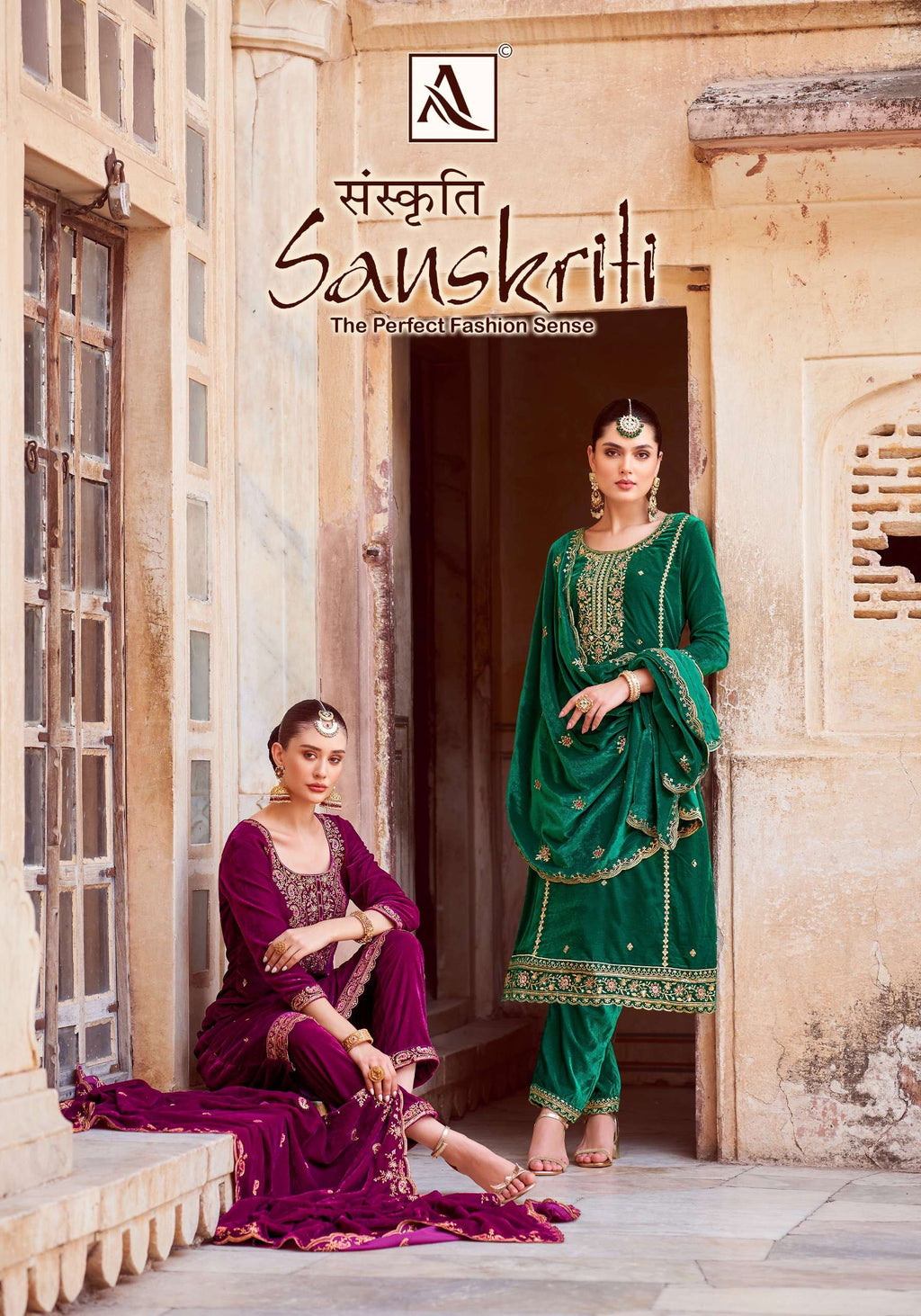Alok Suits Sanskriti Velvet Designer Embroidery Party Wear Suit