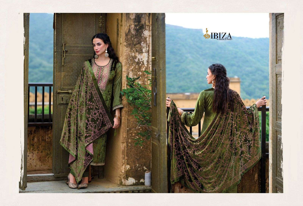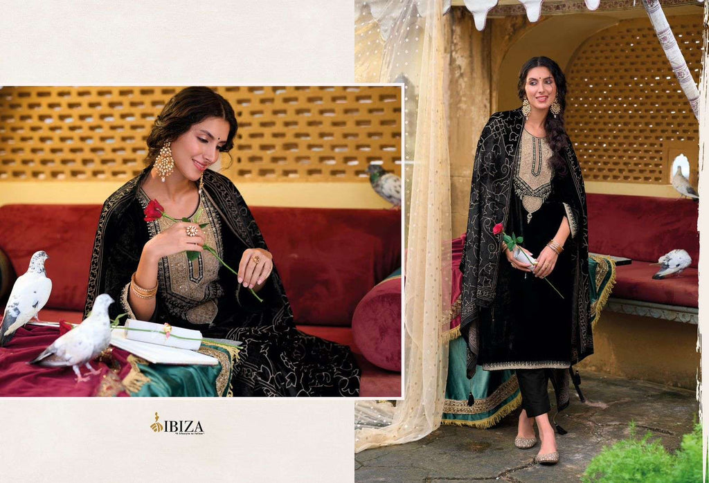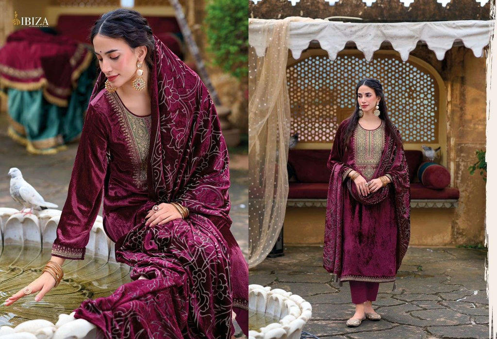 top:-pure viscose velvet nack embroidery pach bottom:-pure pashmina |