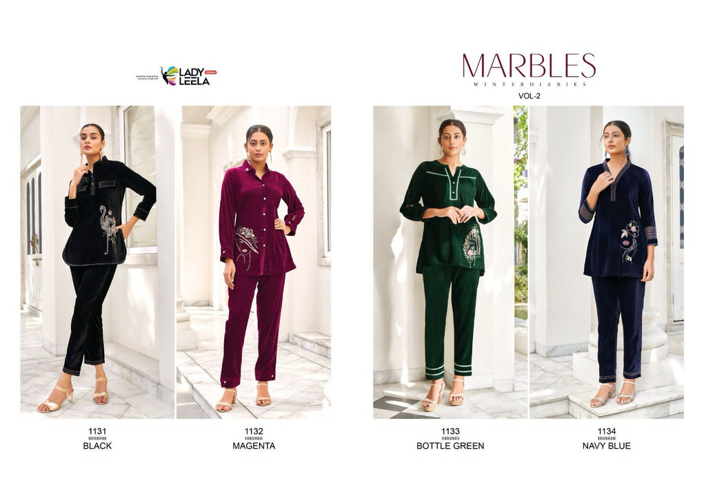Lady Leela Marbles Vol 2 Velvet Fabric With Designer Fancy Wear Kurti With Pant