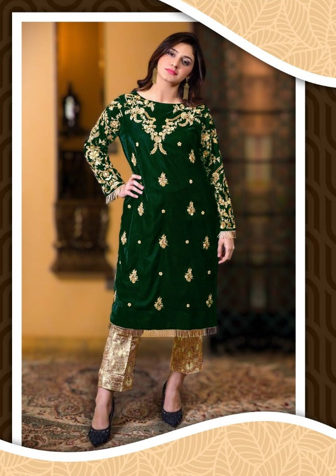 Laxuria Trendz Dno 1241 Velvet With Beautiful Embroidery Work Stylish Designer Wedding Look Kurti
