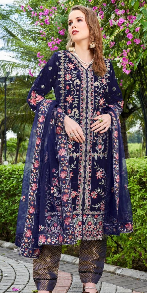 Top: velvet with embroidery Bottam:- banarsai jaqurad Dupatta : net with embroidery |