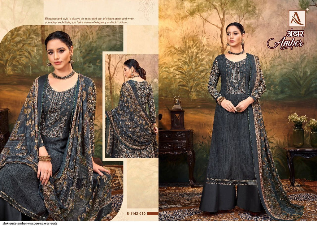 Alok Suit Amber Viscose Rayon Print Fancy Embroidery Swarovski Diamond Work Designer Printed Salwar Suit