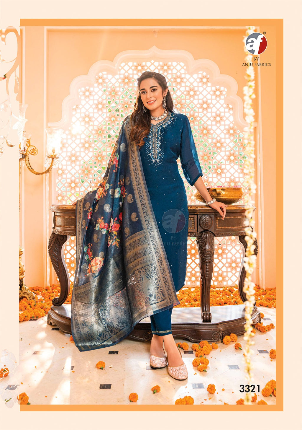 TOP FABRIC- PURE VISCOSE ORAGANZA BOTTOM FABRIC – PURE VISCOSE SILK DUPATTA – HEAVY JACQUARD WITH DIGITAL PRINT WORK TYPE – PURE HAND WORK |