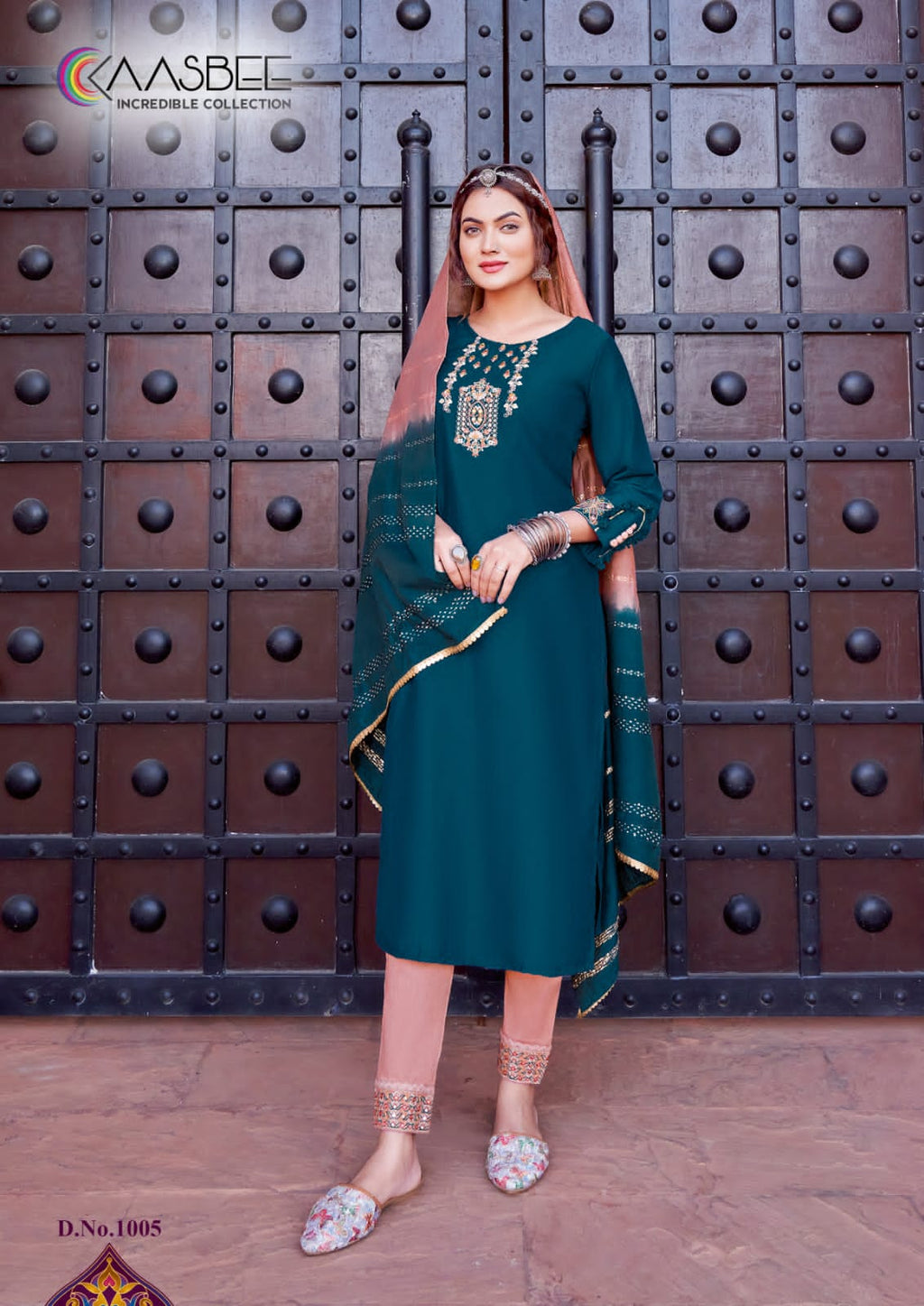 Kaasbee Rajwadi Vol 1 Viscose Embroidery Fancy Kurti Pant & Dupatta