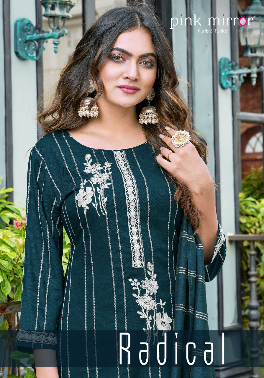 Pink Mirror Radical Viscose With Beautiful Heavy Work Stylish Designer Casual Wear Kurti