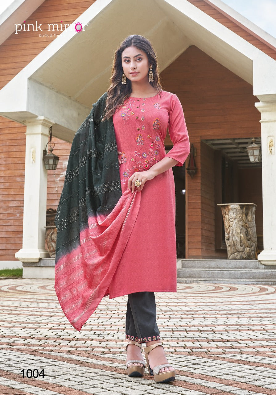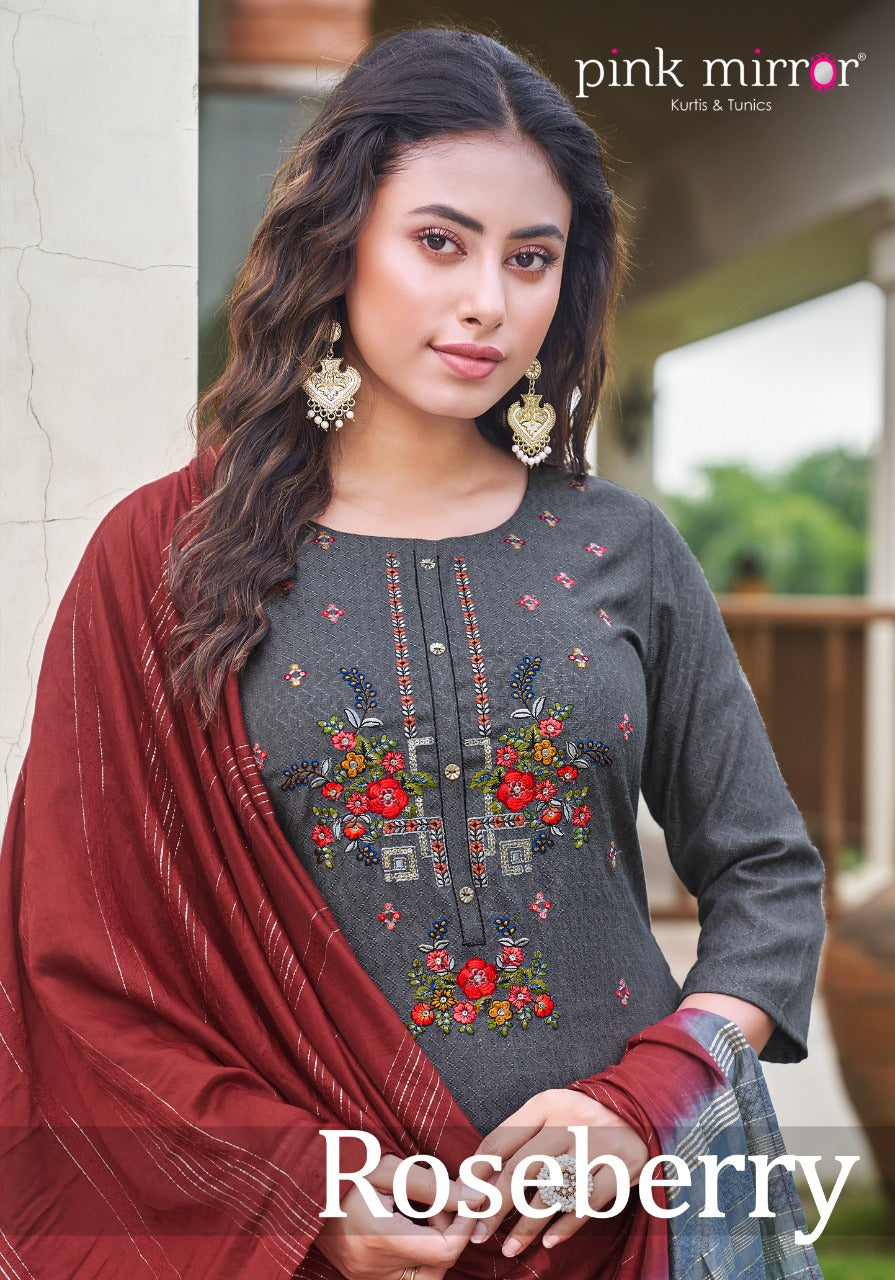 Pink Mirror Roseberry Viscose With Fancy Embroidery Work Stylish Designer Party Wear Beautiful Kurti