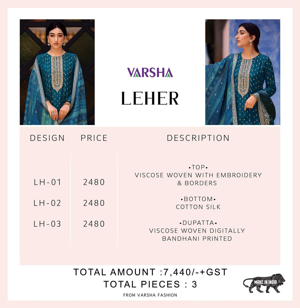 Varsha Leher Viscose With Heavy Embroidery Party Wear Salwar Kameez