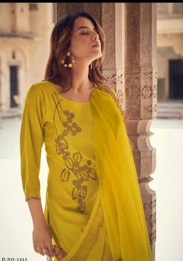 Fabric Details : Pure Viscose Kurtas & Pants With Organza Frills Dupatta Size : M , L, XL, 2XL, 3XL |