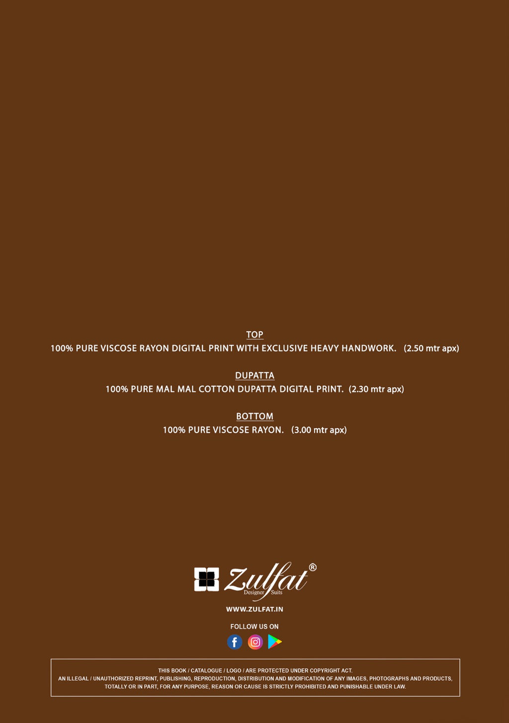 Top: 100% Pure Heavy Viscose Rayon Exclusive Designer Print with HEAVY HANDWORK AND SWAROVSKY WORK (2.50 mtrs apx) Dupatta: 100% Pure Cotton Mal Mal Print (2.30 mtrs apx) Bottom: 100% Pure Viscose Rayon (3 mtrs apx) |