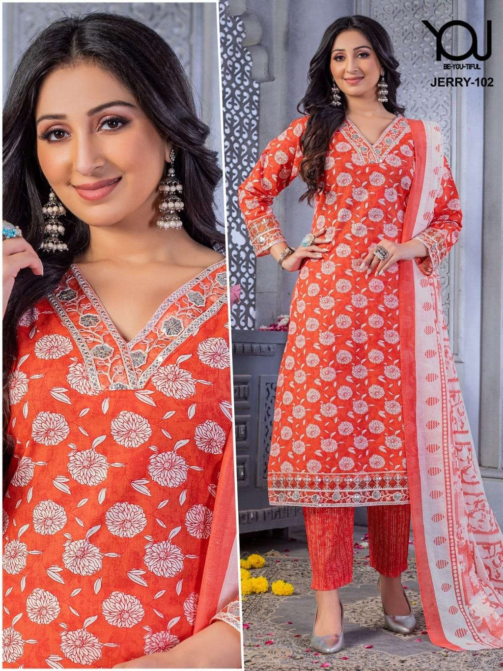 Wanna Jerry Cotton Print Fancy V Neck Pattern Combo Set Designer Kurti