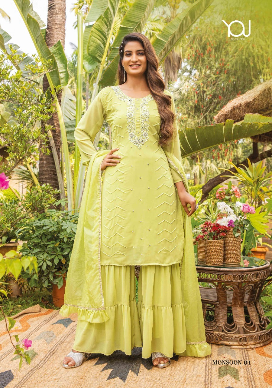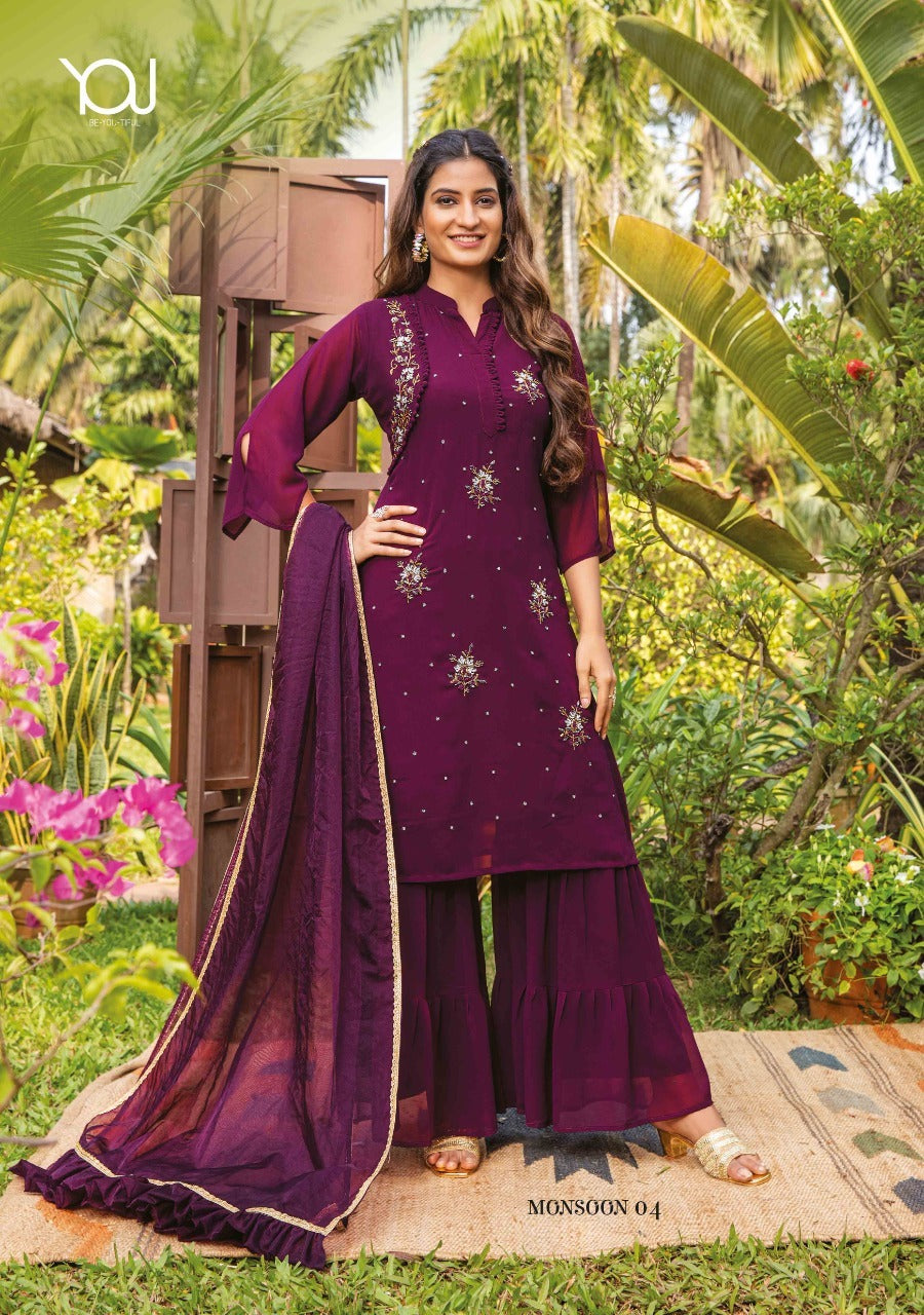 Wanna Monsoon Georgette Fancy Stylish Party Wear Kurtis With Sharara
