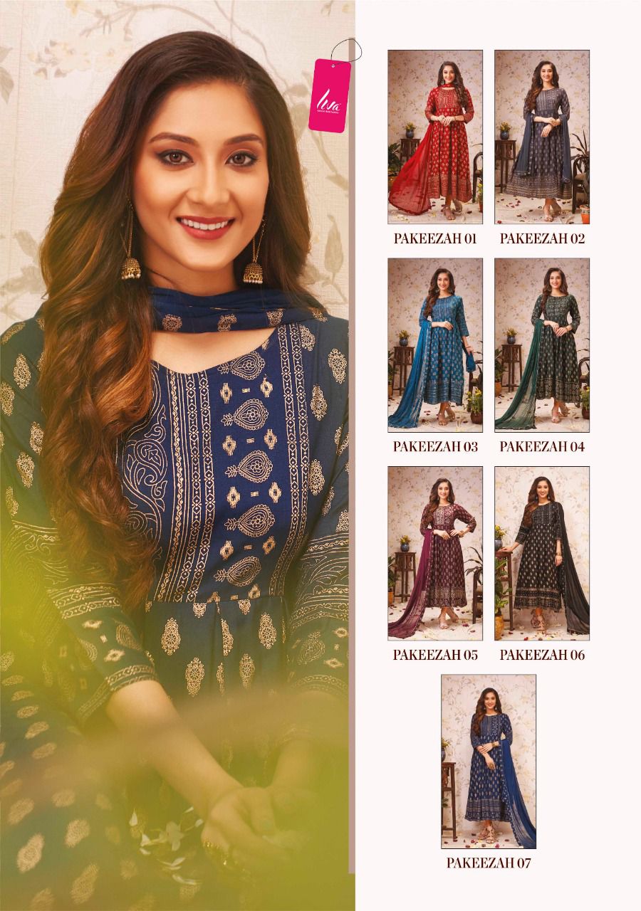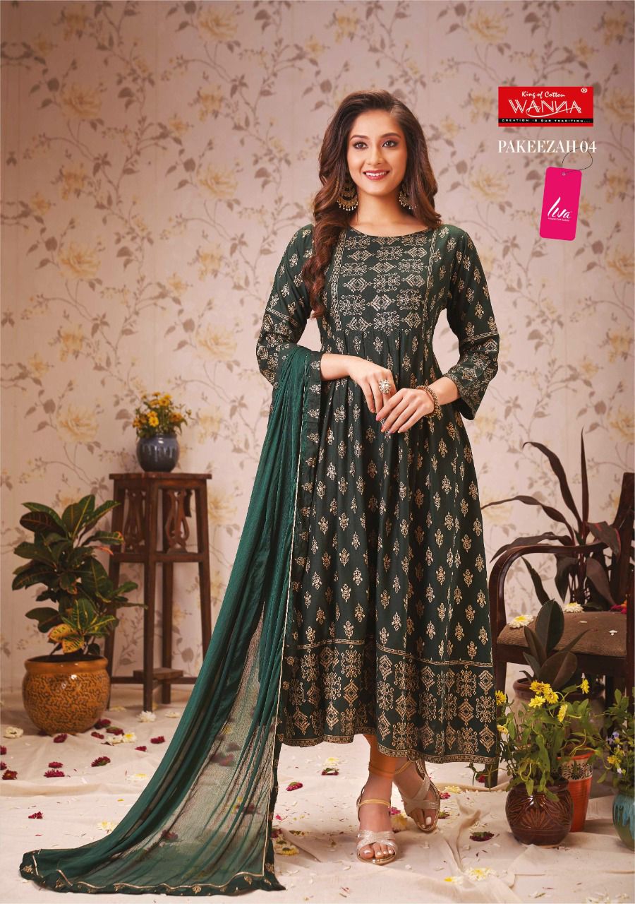 Top – Finest Quality of Rayon Slub Festive Gold print Fancy GOWN 52″ Length Collection |
