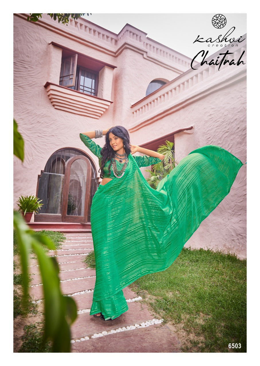Kashvi Creation Launch By Chaitrah Weightless Zari Patta Exclusive Designer Wedding Wear Fancy Sarees