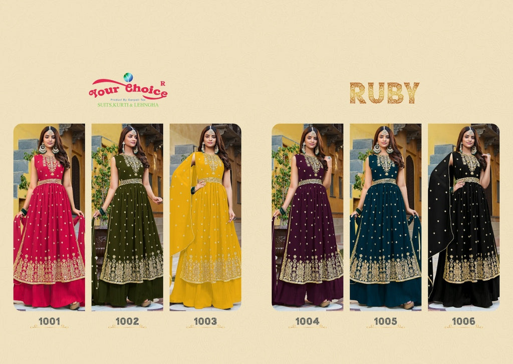 Your Choice Ruby Georgette With Heavy Embroidery Work Stylish Designer Festive Wear Fancy Kurti