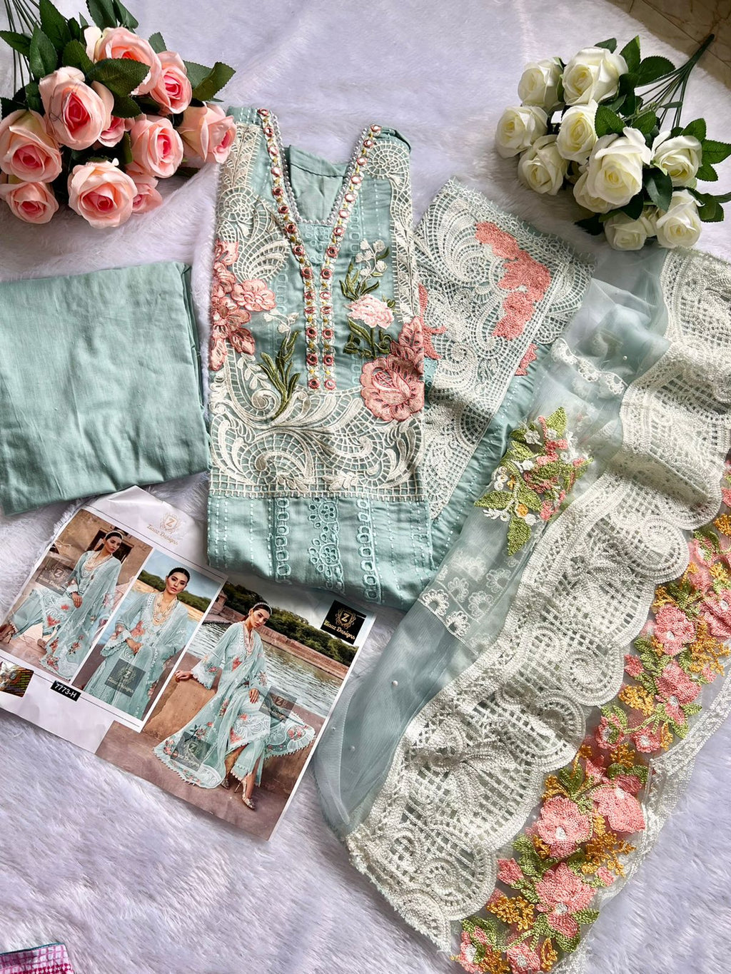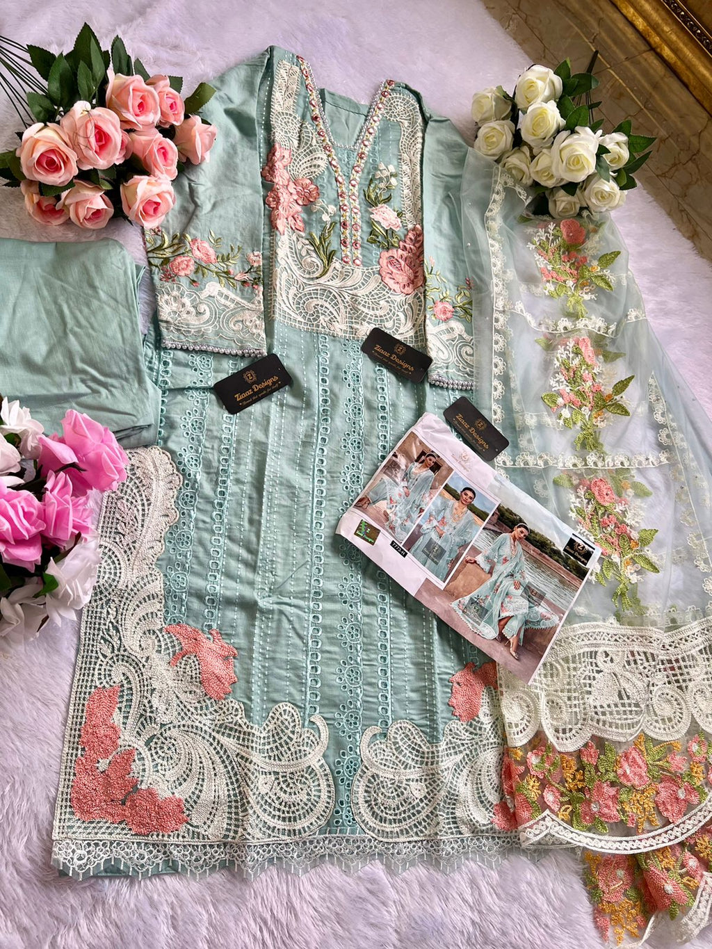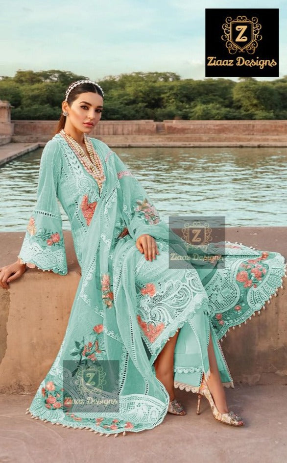Ziaaz Hit Pastel Blue Pure Cotton With Embroidery Work Stylish Designer Festive Wear Pakistani Salwar Kameez