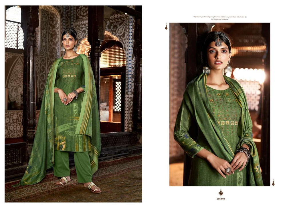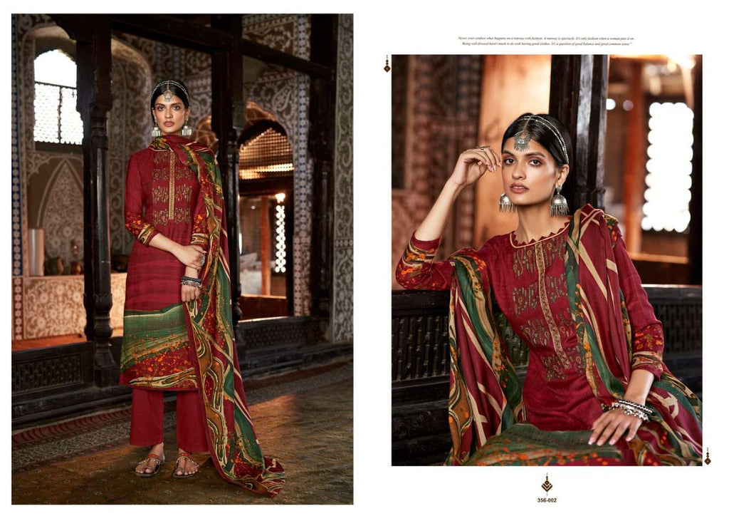 Top: 100% Pure Pashmina Digital Style Print with Heavy Embroidery Work. (2.50 mtrs) 🔸 Dupatta: 100% Pure Pashmina Shawl. (2.30 mtr) 🔸 Bottom: Pure Pashmina Spun. (3 mtrs apx) |