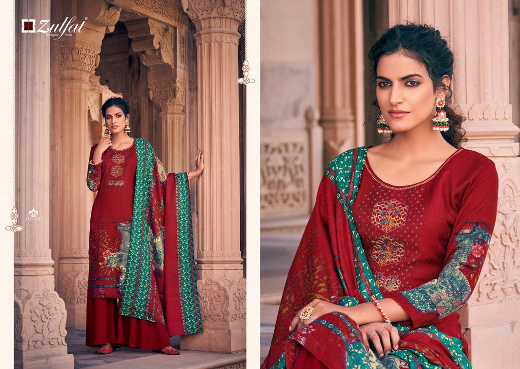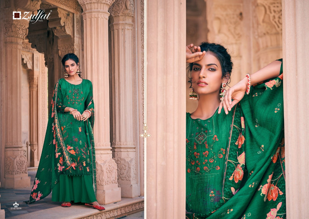 Zulfat Designer Suit Olive Pashmina Print Embroidered Work Salwar Kameez
