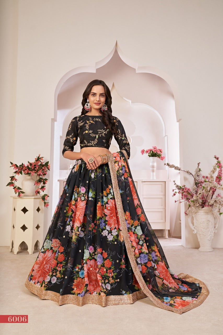 Aawiya Lotus Vol 1 Dno 6006 Georgette Stylish Festival Look Floral Printed Designer Wear Lehenga