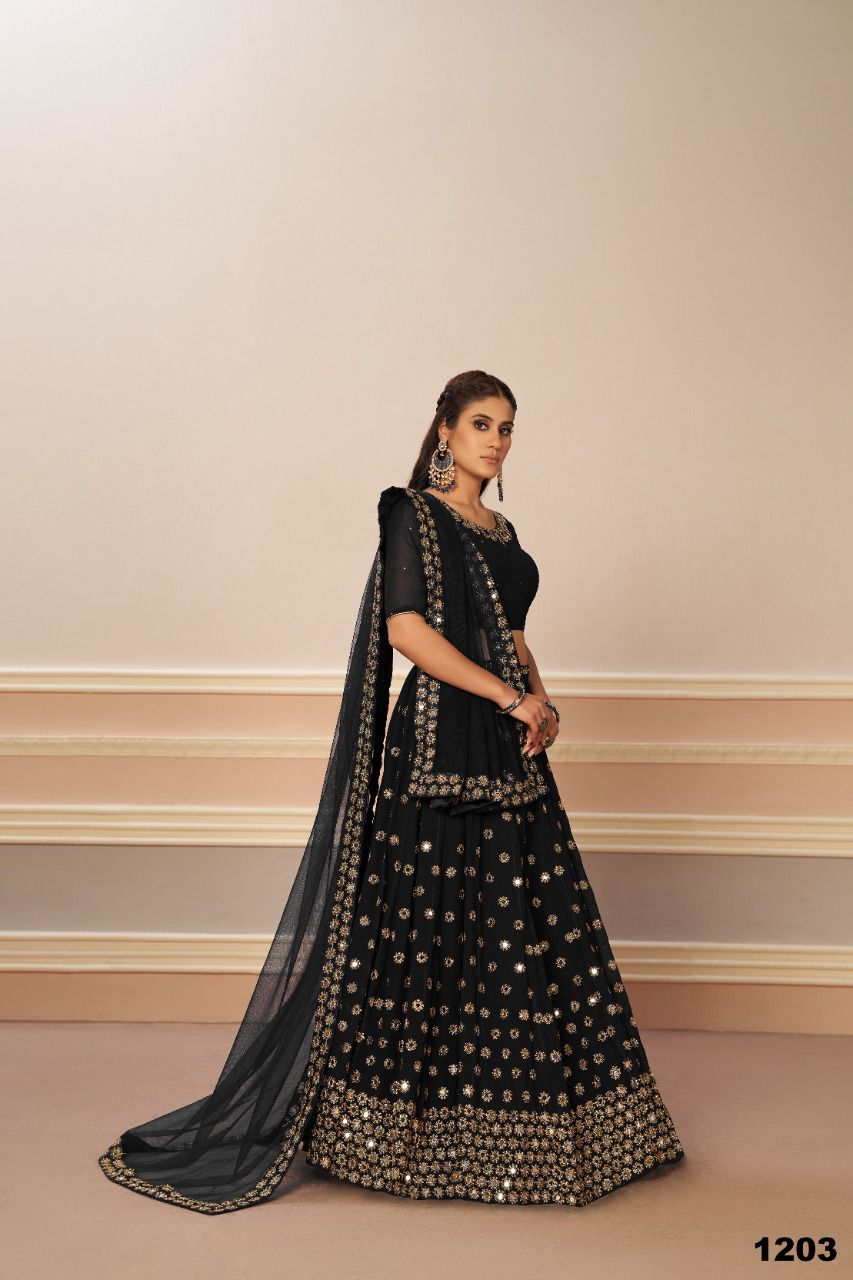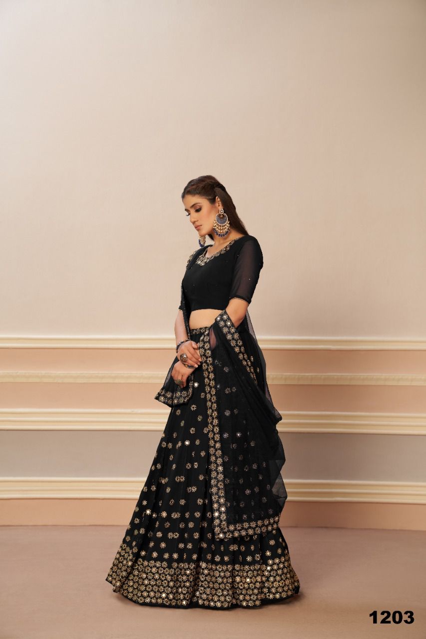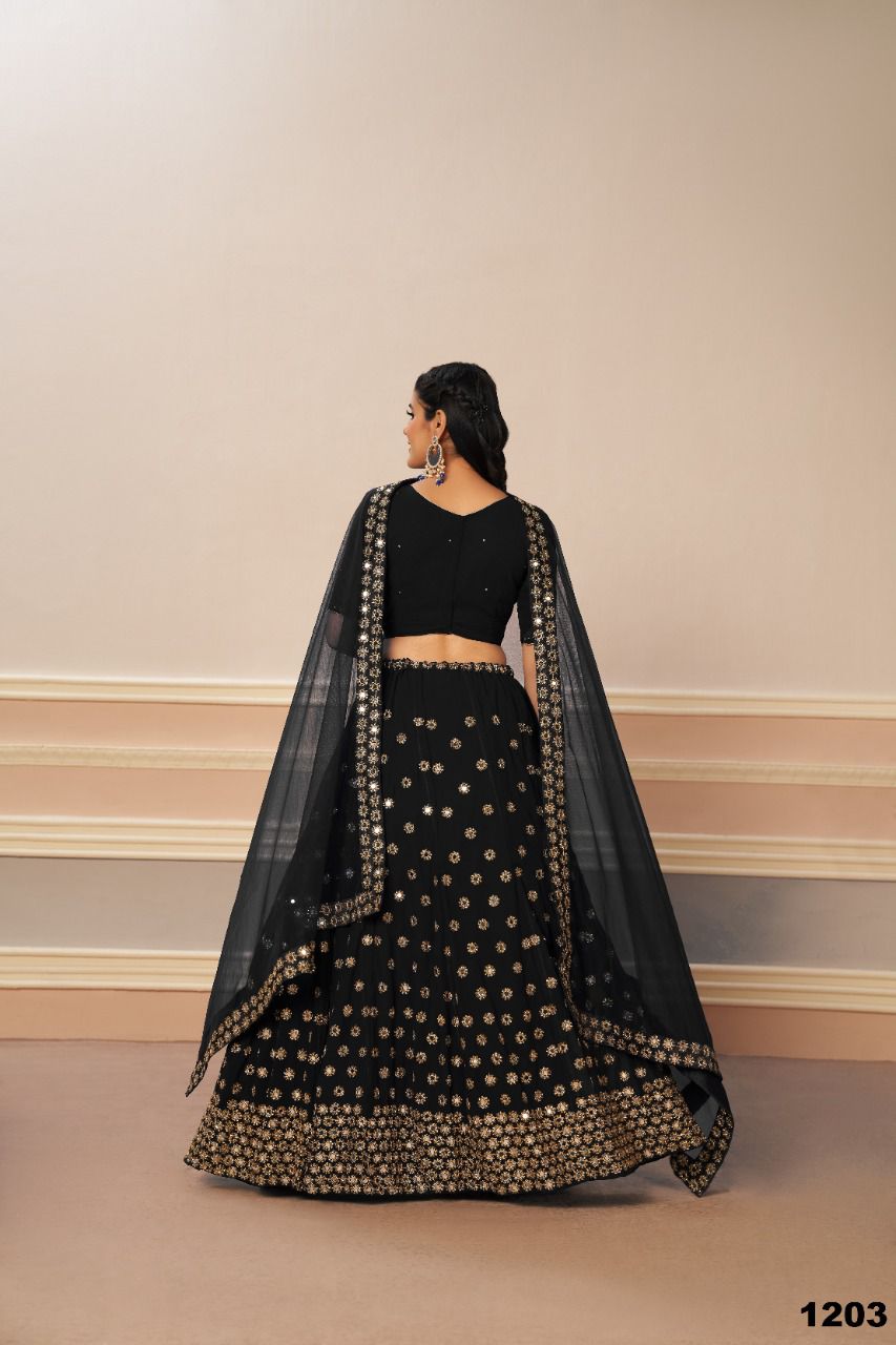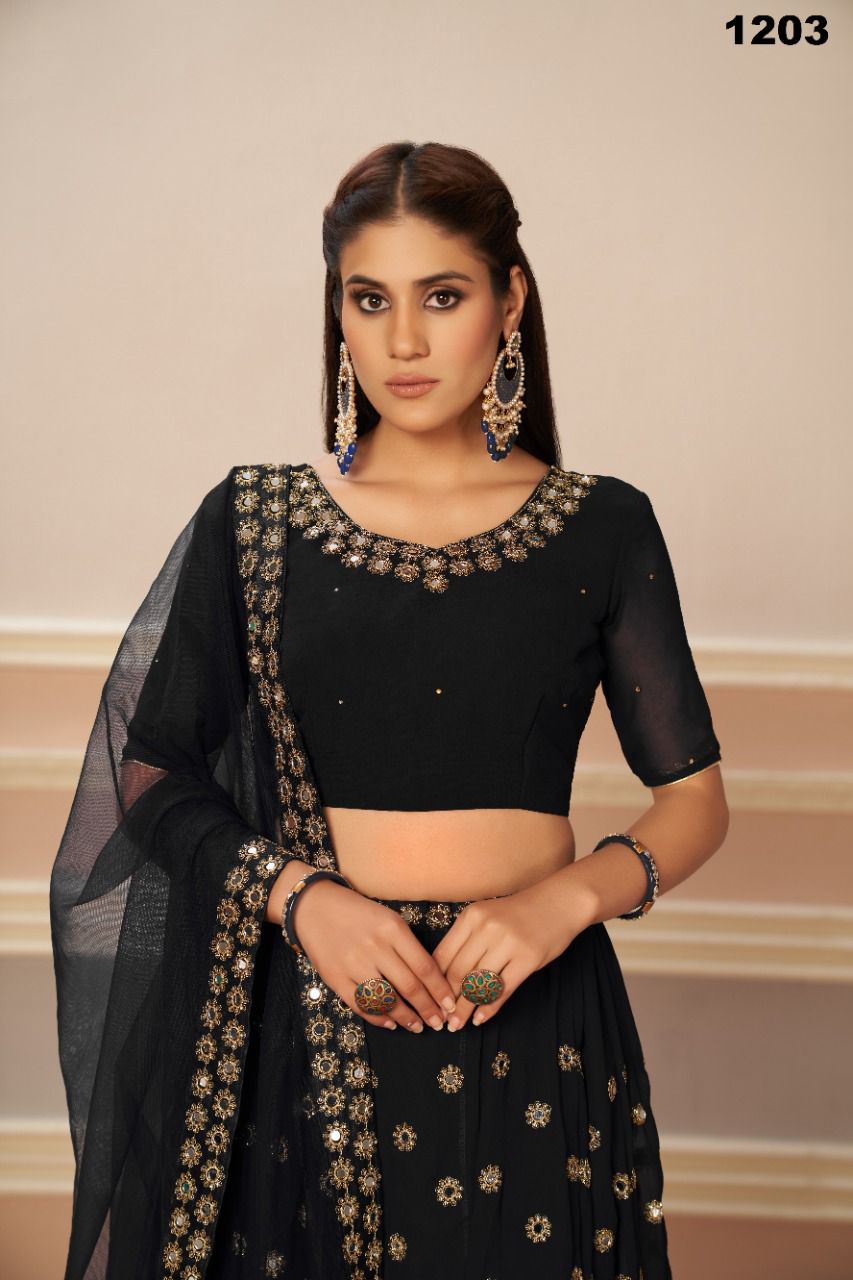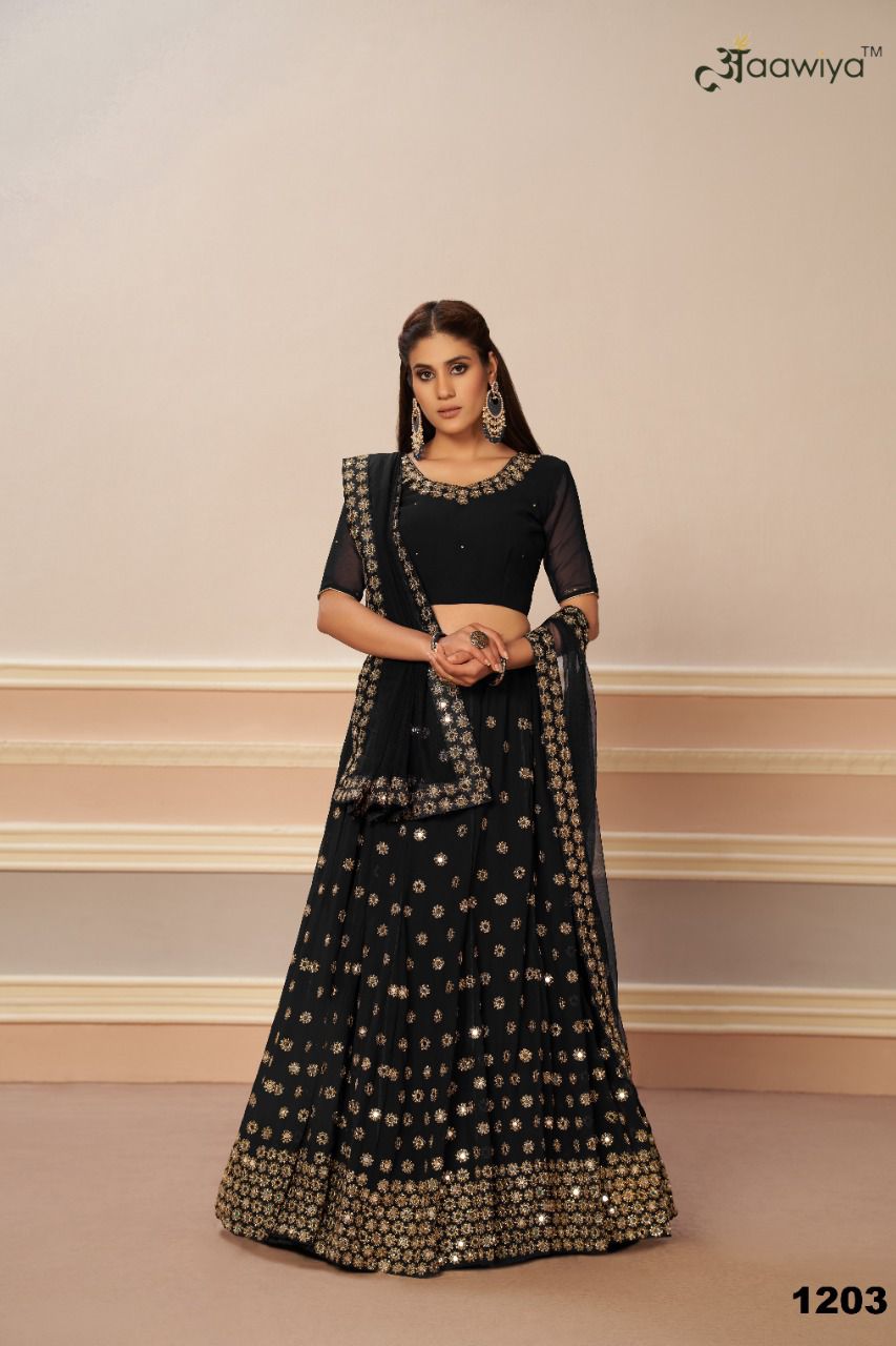 Aawiya Official 1203 Black Mirror Georgette Stylish Designer Party Wear Lehenga Choli