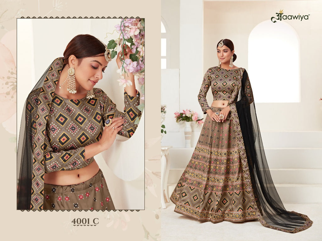 Lehenga & Choli Fabric: Ajmeri silk . Dupatta Fabric: Butterfully Net with digital printed border Choli: Customizable Upto 44 Inches (1 Mtr) At The Bust. Lehenga: Customizable Upto 42 Inches Waist. Lehenga Length: 42 Inches. Can-Can available Dupatta Length: 2.30 Mtr. Dupatta Width: 1 Mtr. #अaawiya™️Official |