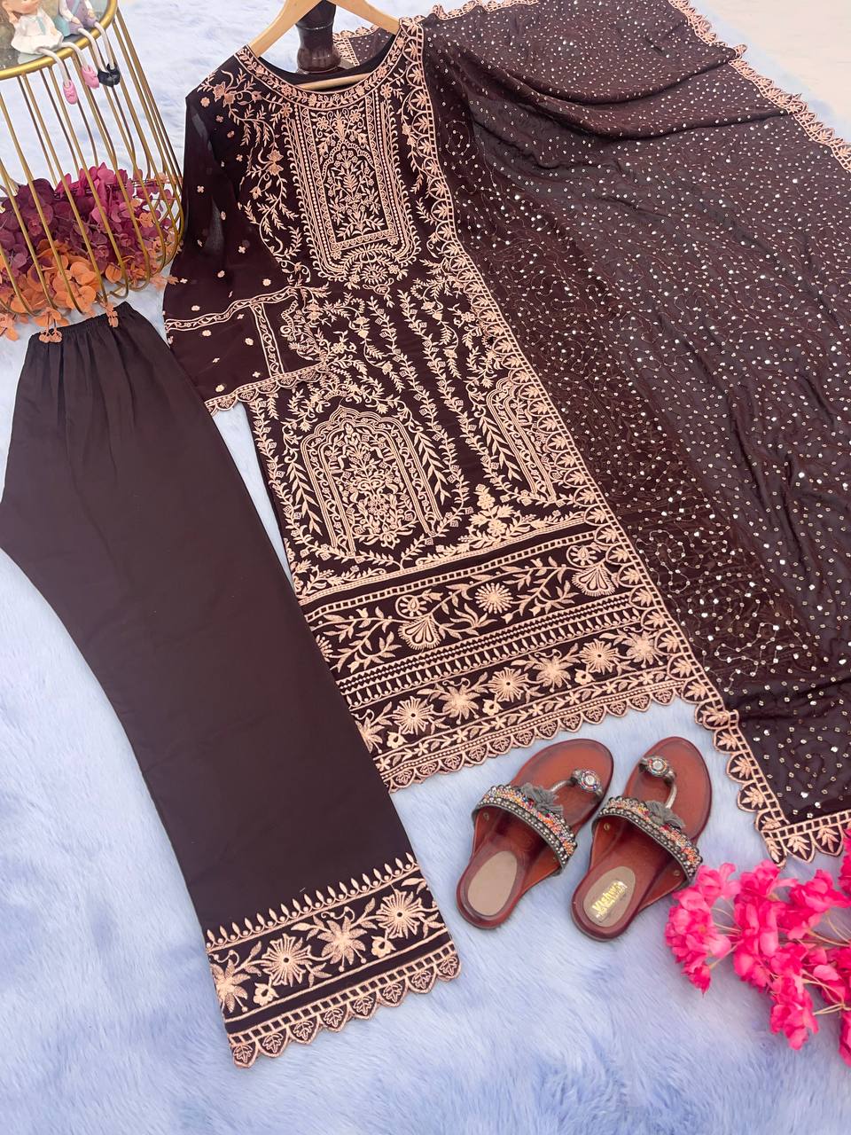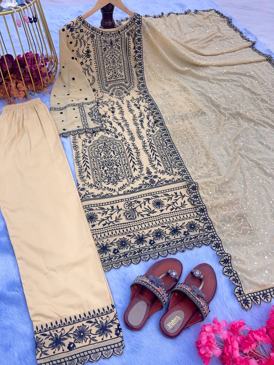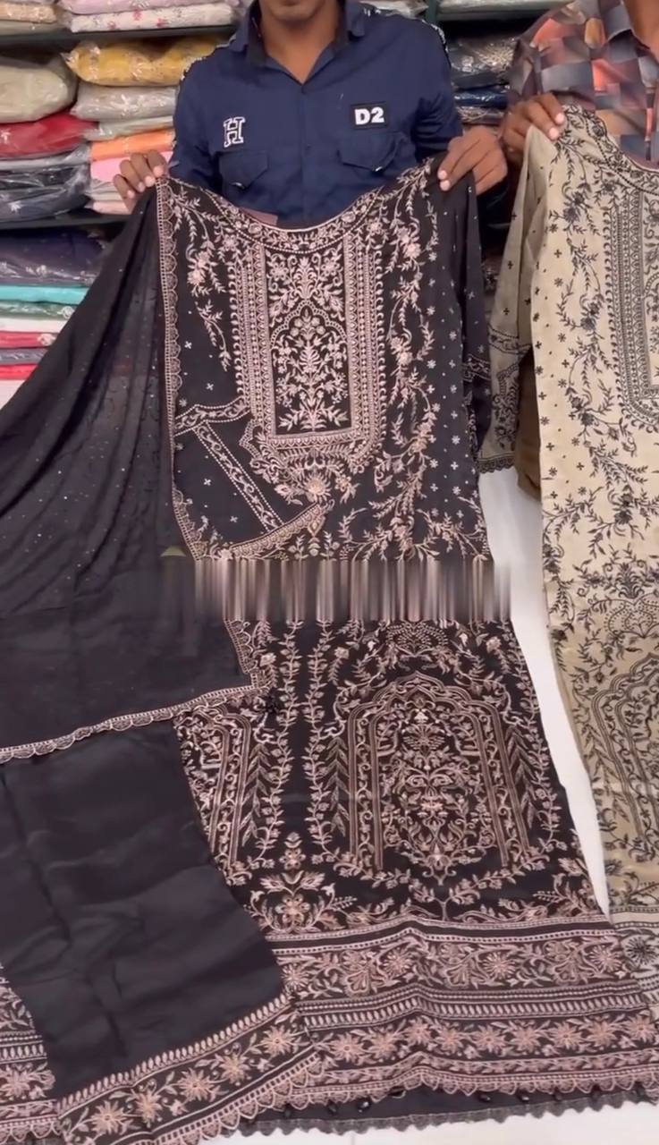 *Top Fabric*:Heavy Faux Georgette With Embroidery Work With Fancy Sleeve *Bottom Fabric *:Heavy Butter Silk With Embroidery Work *Dupatta Fabric*:Heavy Faux Georgette With Embroidery 5 mm Sequence Work With Four Side Embroidery Lace Bodar |