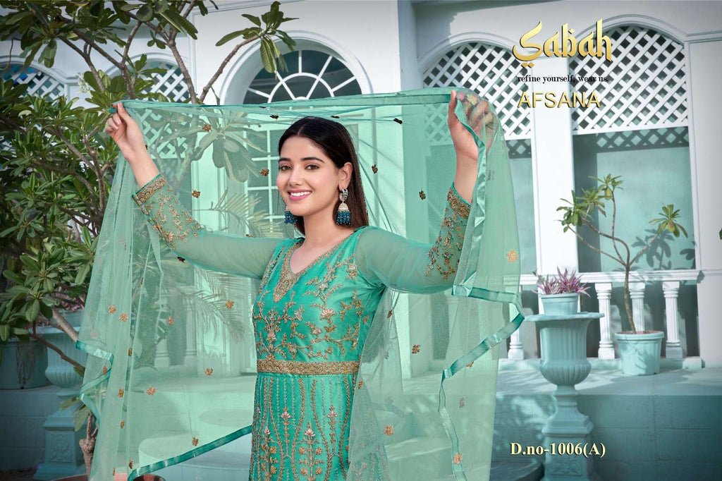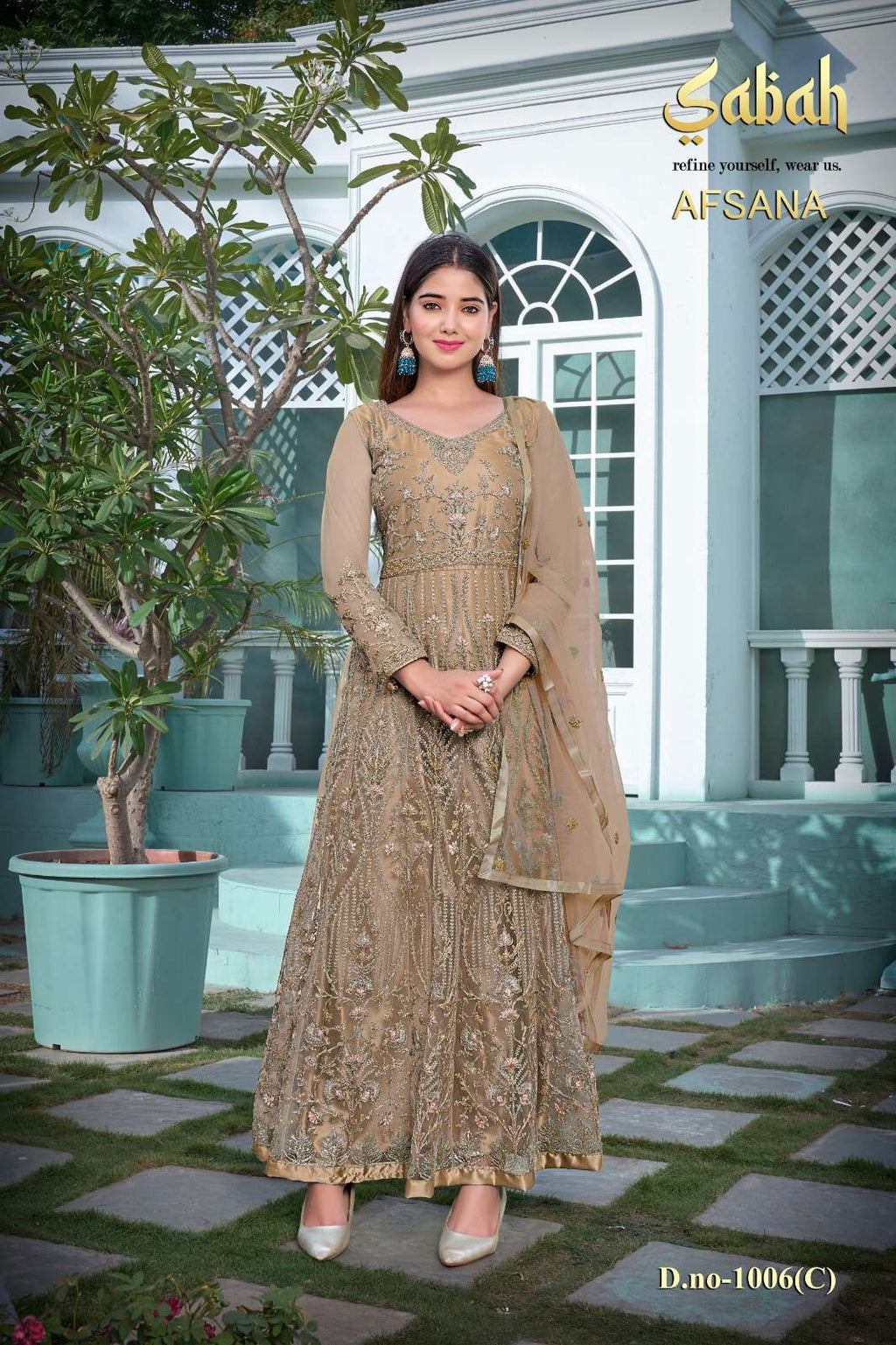 Afsana Vol 2 1006 By Sabah Butterfly Net Heavy Designer Work Semistitch Long Salwar Kameez