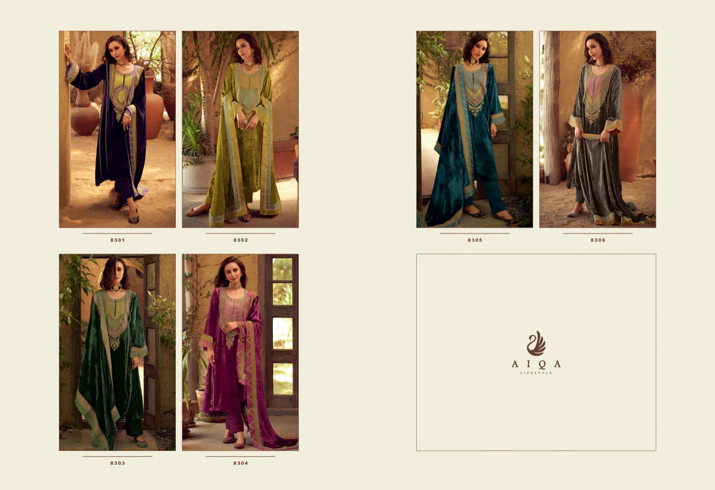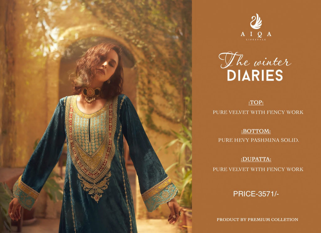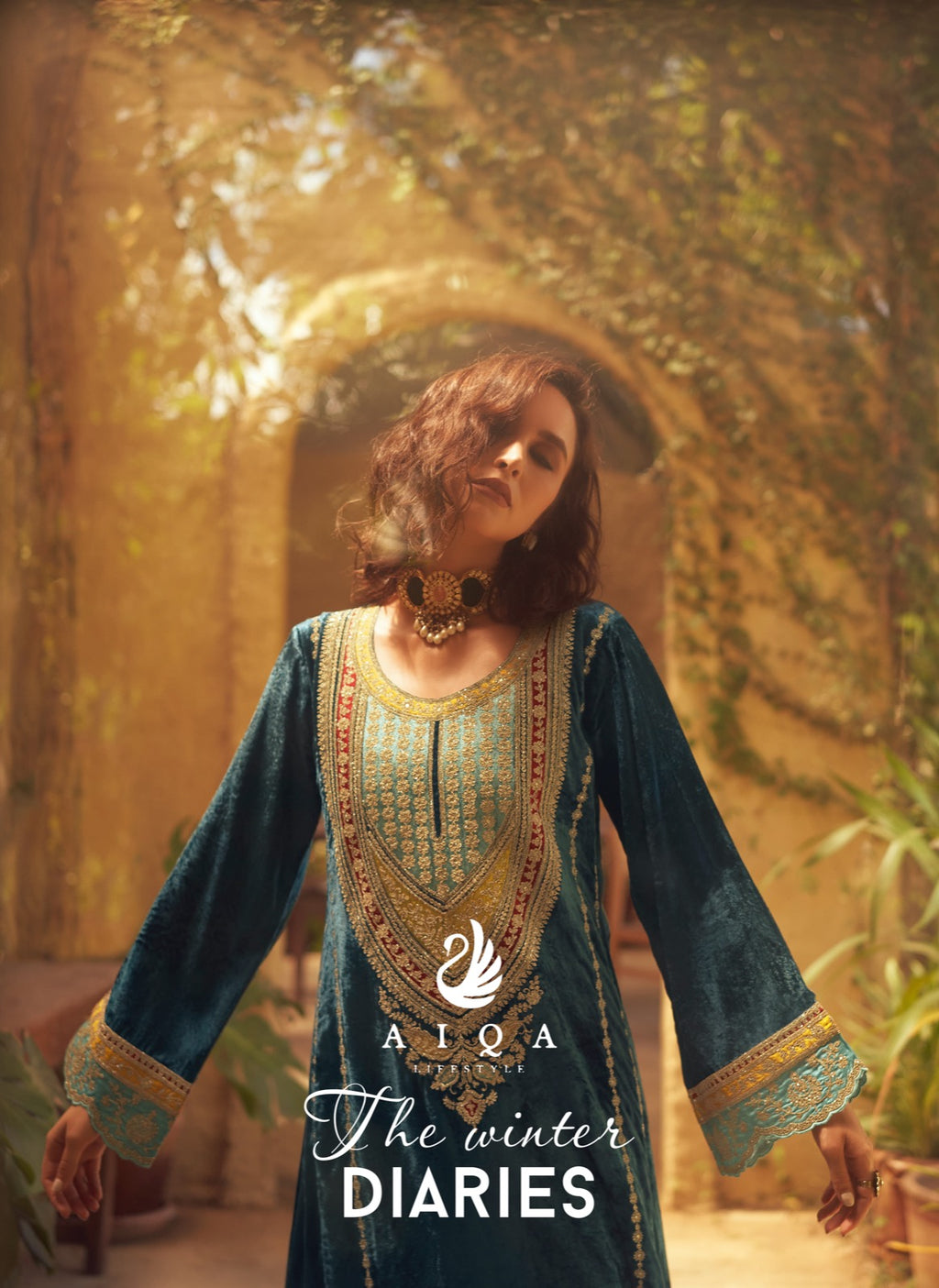 Aiqa Winter Diaries Velvet Fancy Work Embroidery Heavy Salwar Kameez
