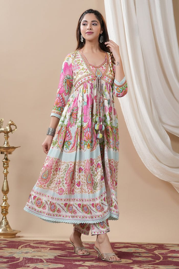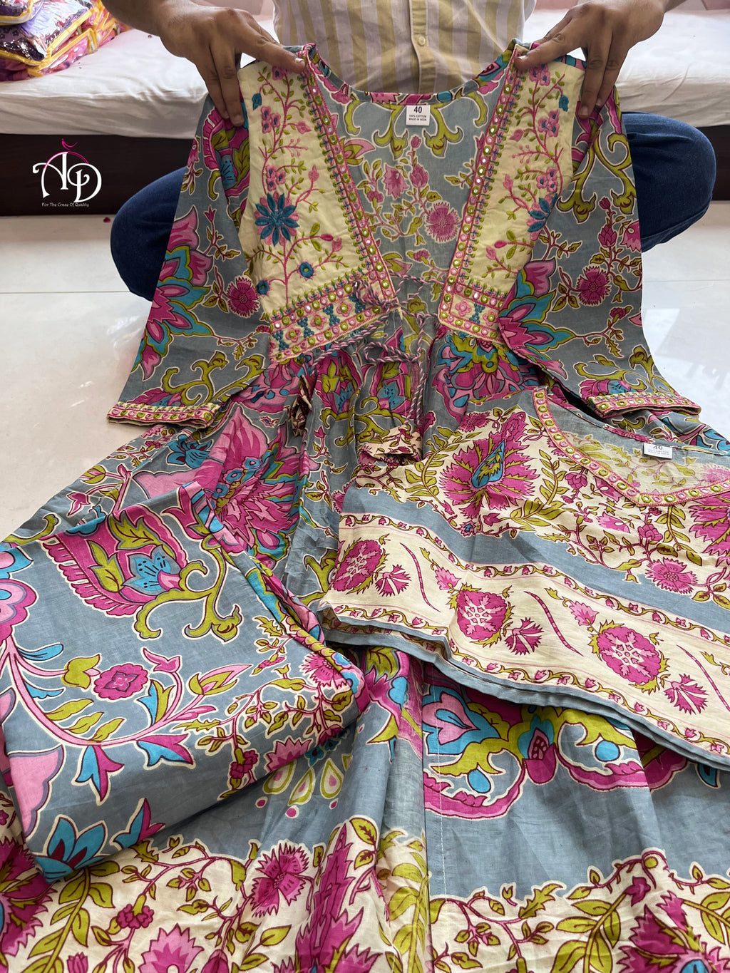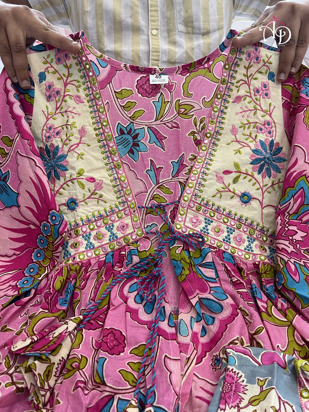 Akd Rajwadi Pure Cotton Rajwadi Printed Embroidery Work Readymade Kurti