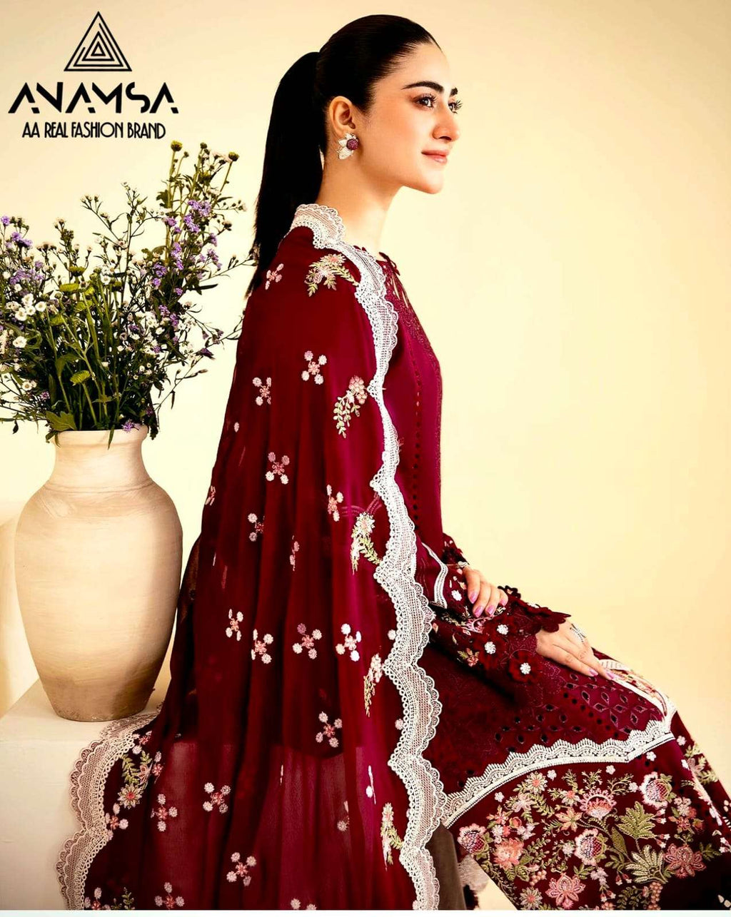 heavy pure export quality jaam cotton with heavy embroidered and sequence work very beautiful semi stitched outfit unstitched heavy quality pure cotton pc very beautiful pure fox georgette fancy dupatta heavy embroidery |