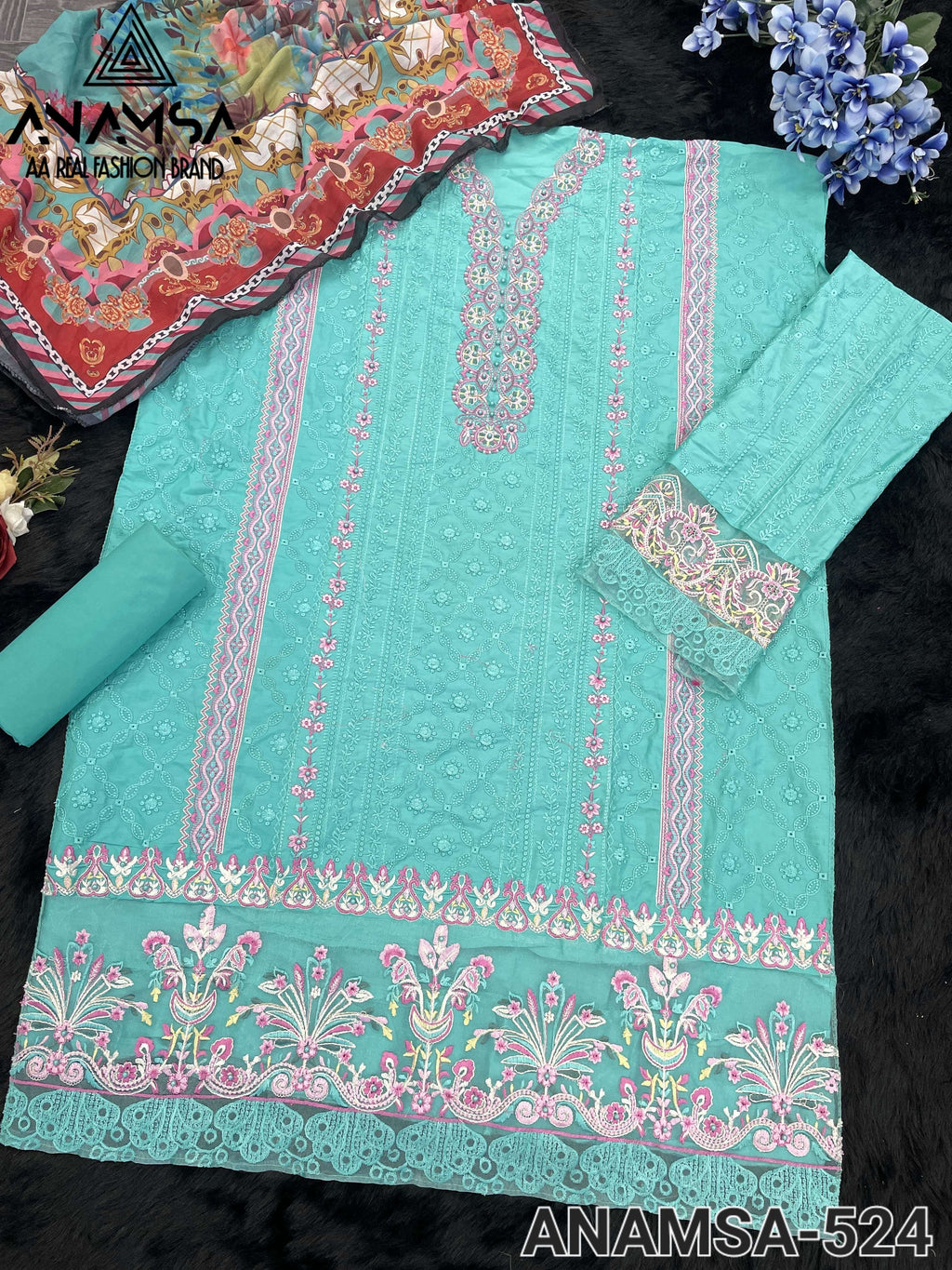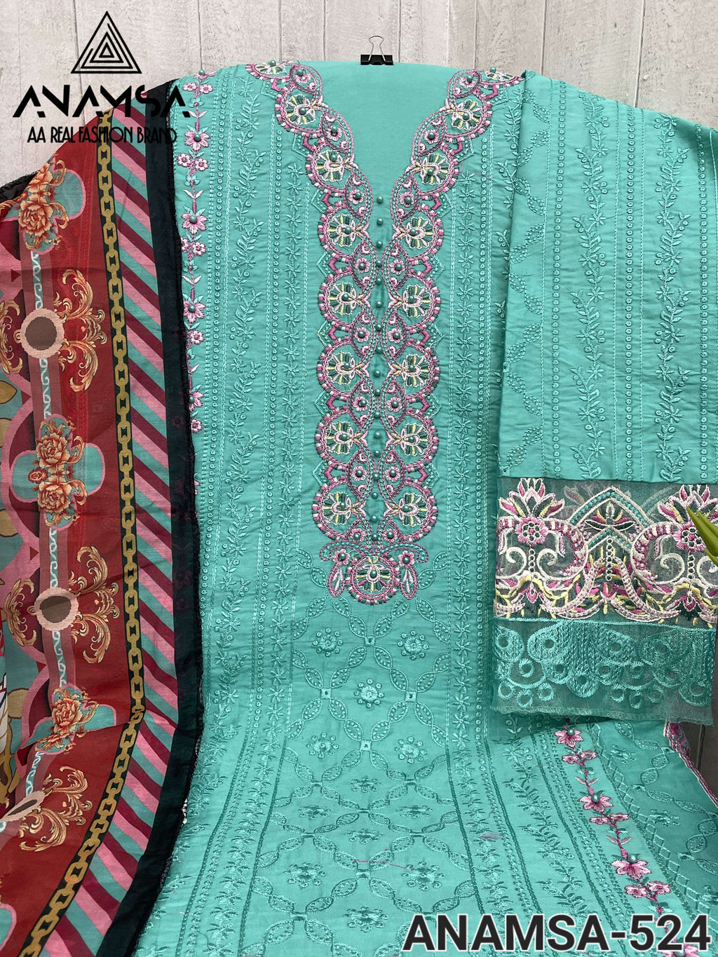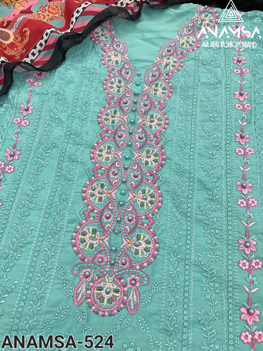 Anamsa 524 Jam Cotton Heavy Embroidered Sequence Work Suit