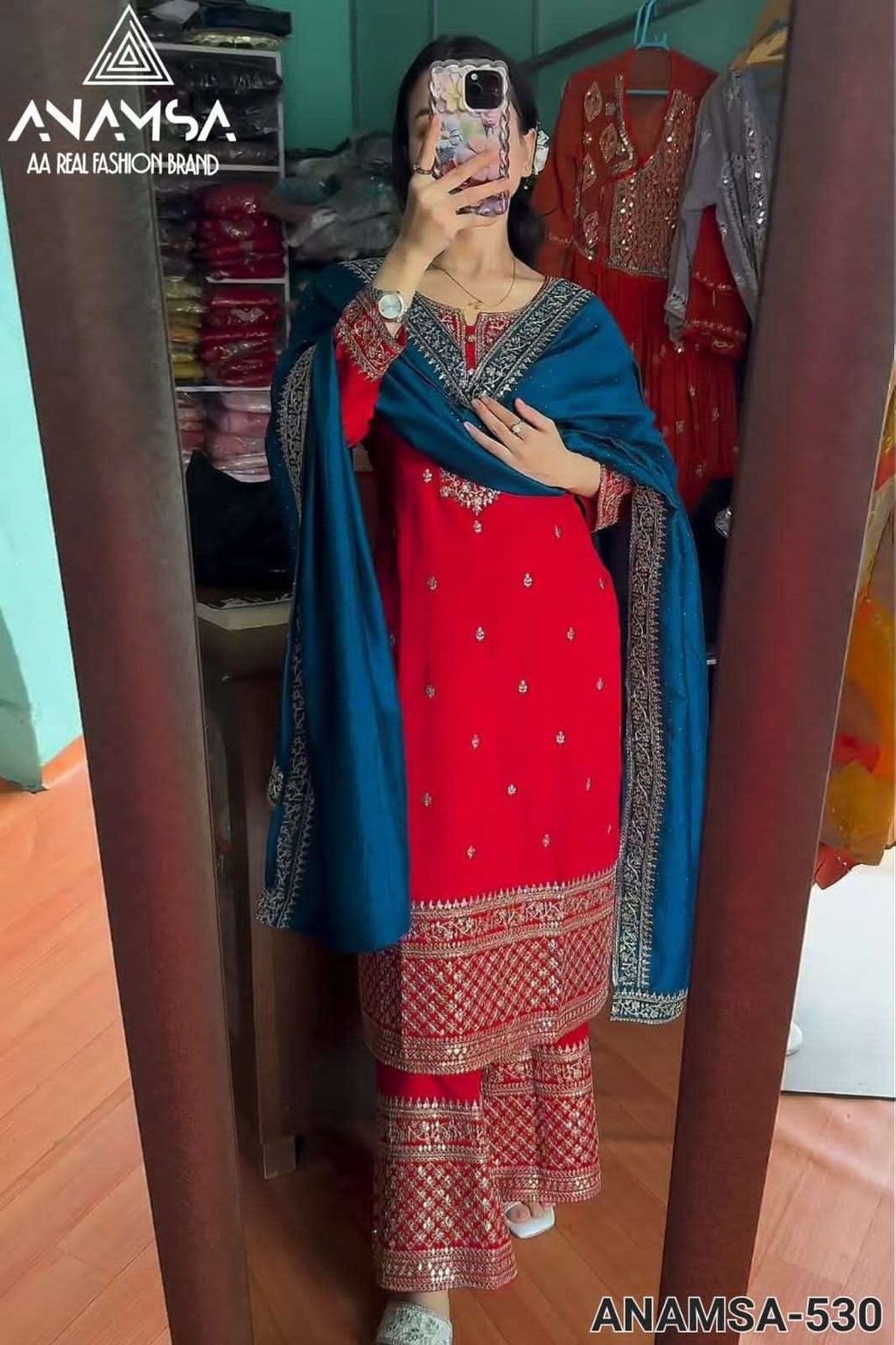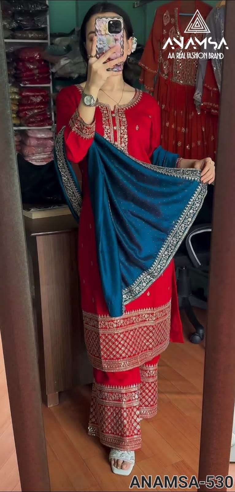 heavy pure rayon cotton with heavy embroidered very beautiful design and sequence work and moti work fullstitched heavy rayon cotton bottom very beautiful pure fox georgette dupatta with heavy embroidery work rate - 1199/- size details:- top fullystitched free size for l(40)/xl(42)/xxl(44) bottom fully stitched free size for l(40)/xl(42)/xxl(44) |