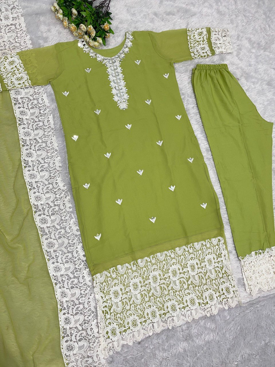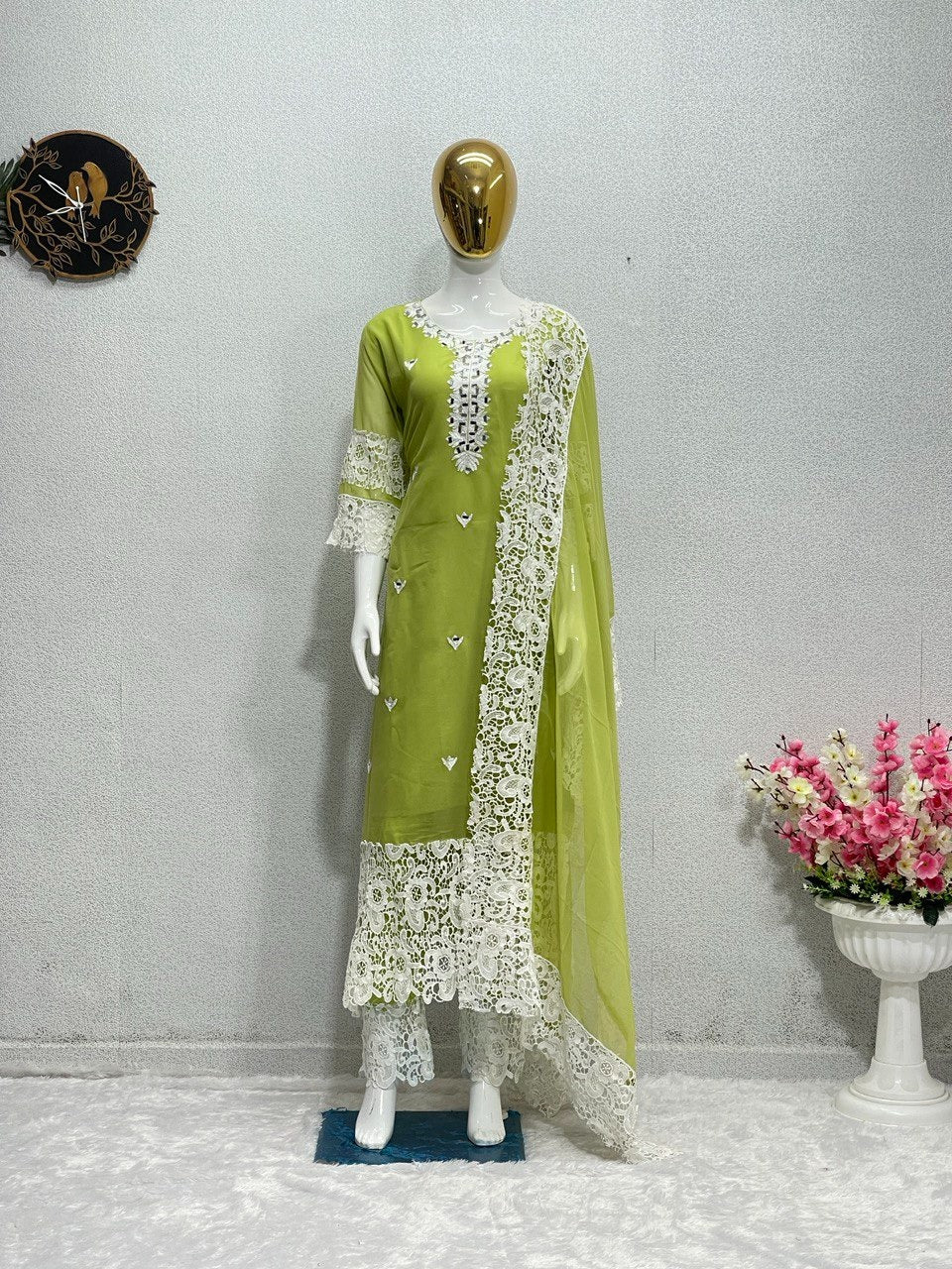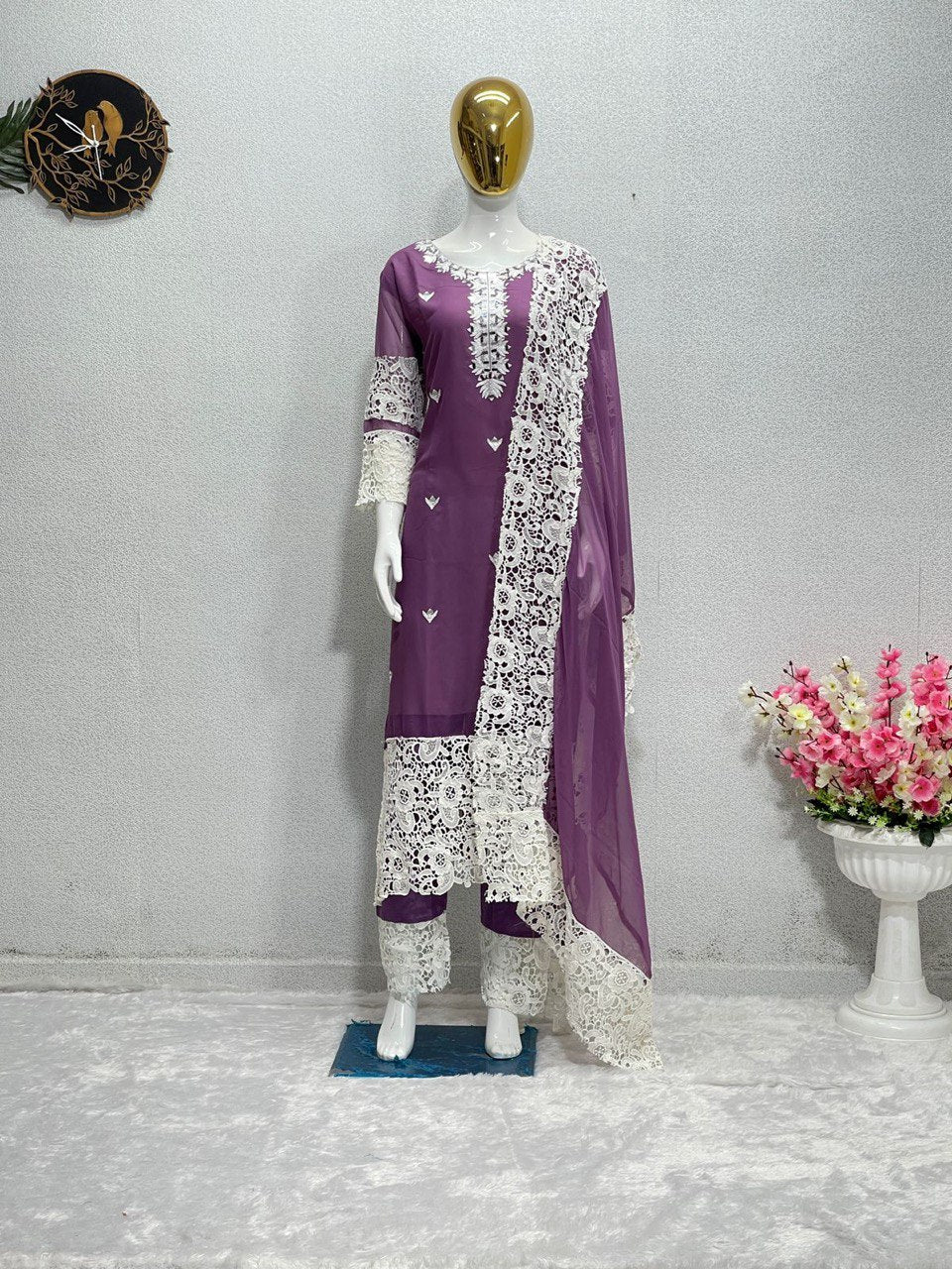 #TOP FABRICS : FUAX GEORGETTE #PENT FABRICS : SOFT BUTTER SILK #DUPATTA : GEORGETTE |