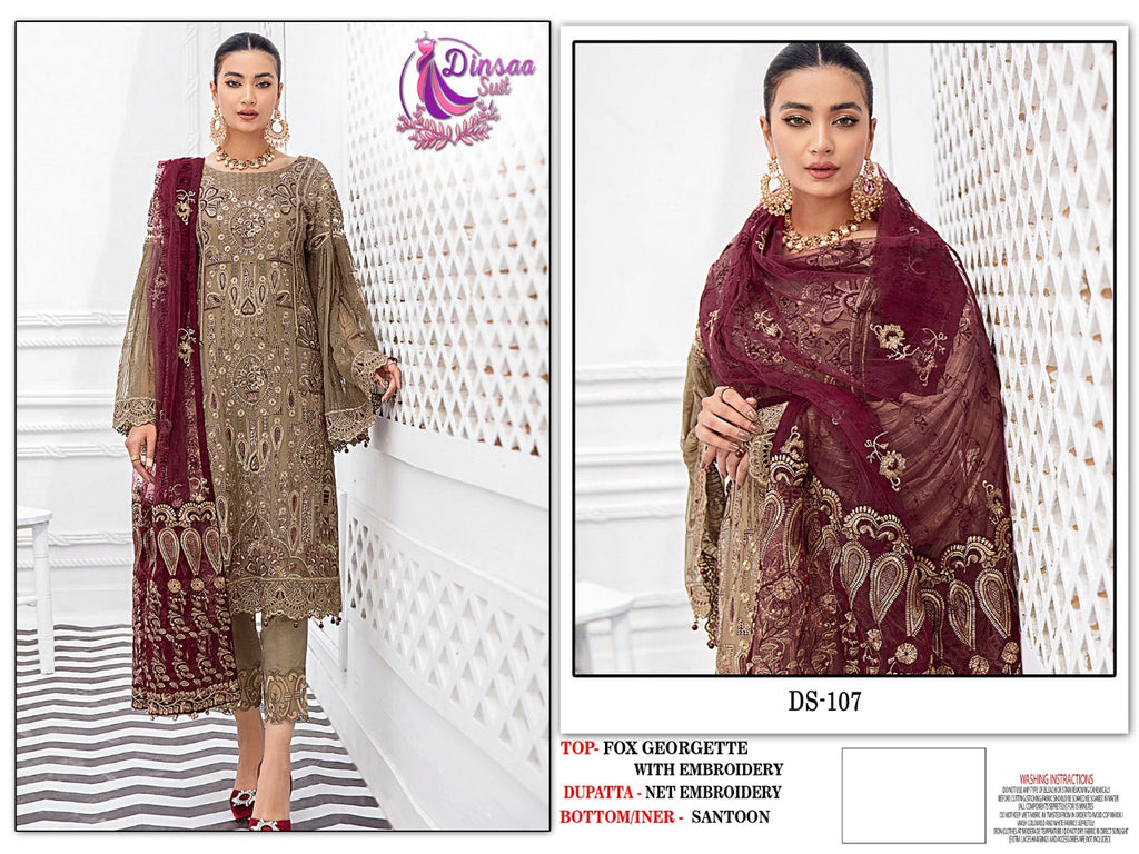Dinsaa Suit Dno 107 Georgette With Heavy Embroidery Stylish Designer Wedding Wear Salwar Suit