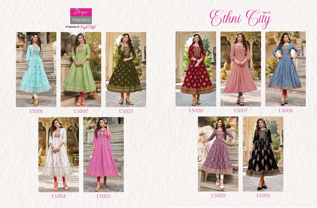 Diya Trends Ethnicity Vol 13 Rayon With Fancy Work Stylish Designer Festive Wear Fancy Kurti