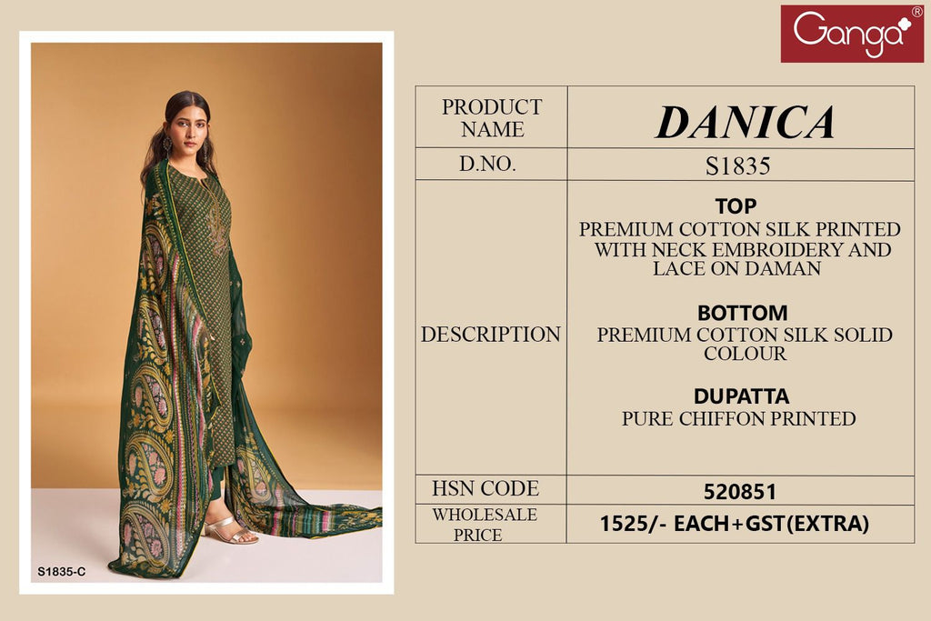 Top:premium Cotton Silk Printed With Neck Embroidery And Lace On Daman |